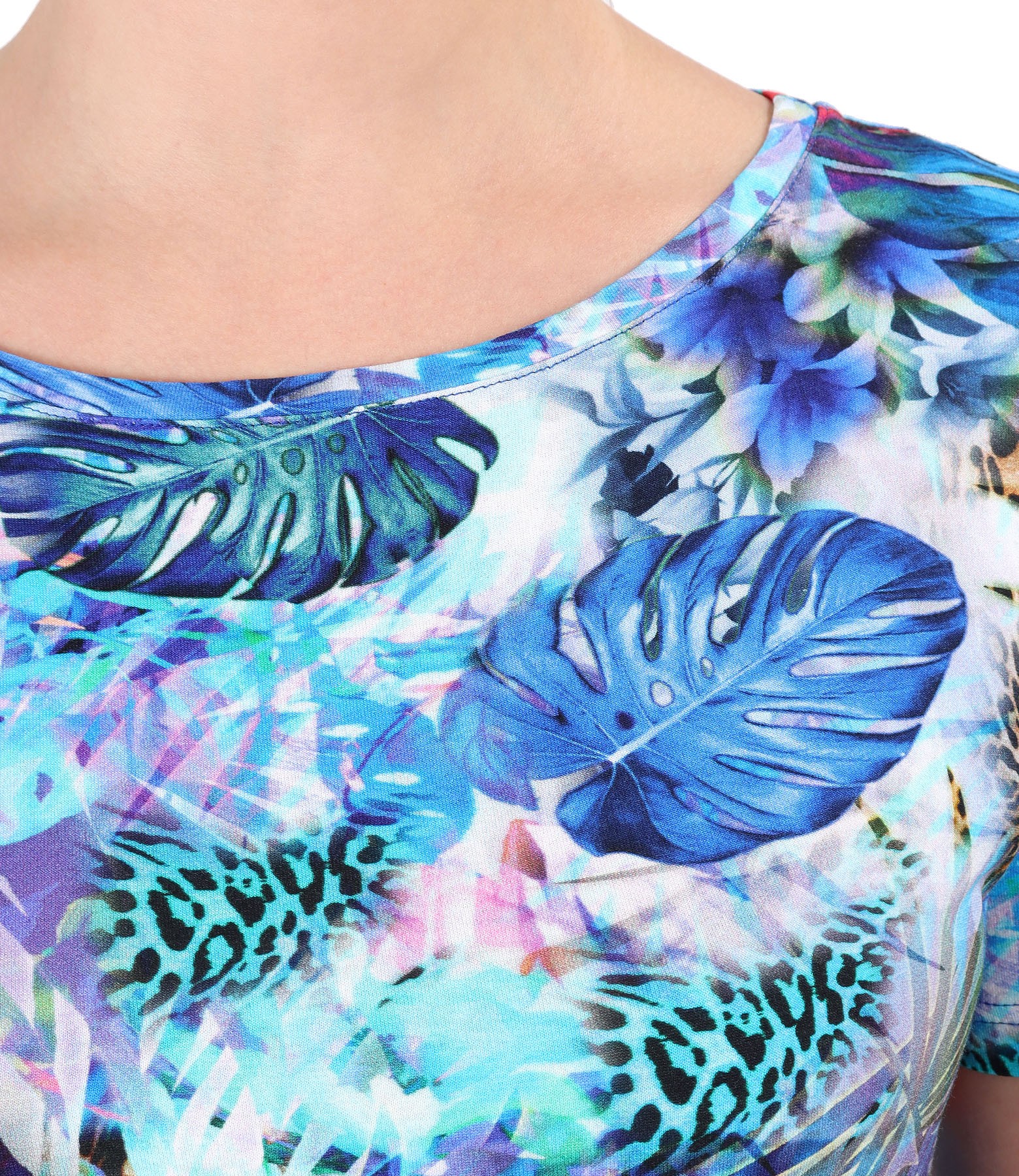 Bluza din jerse elastic imprimat cu motive florale (Albastru), marimea