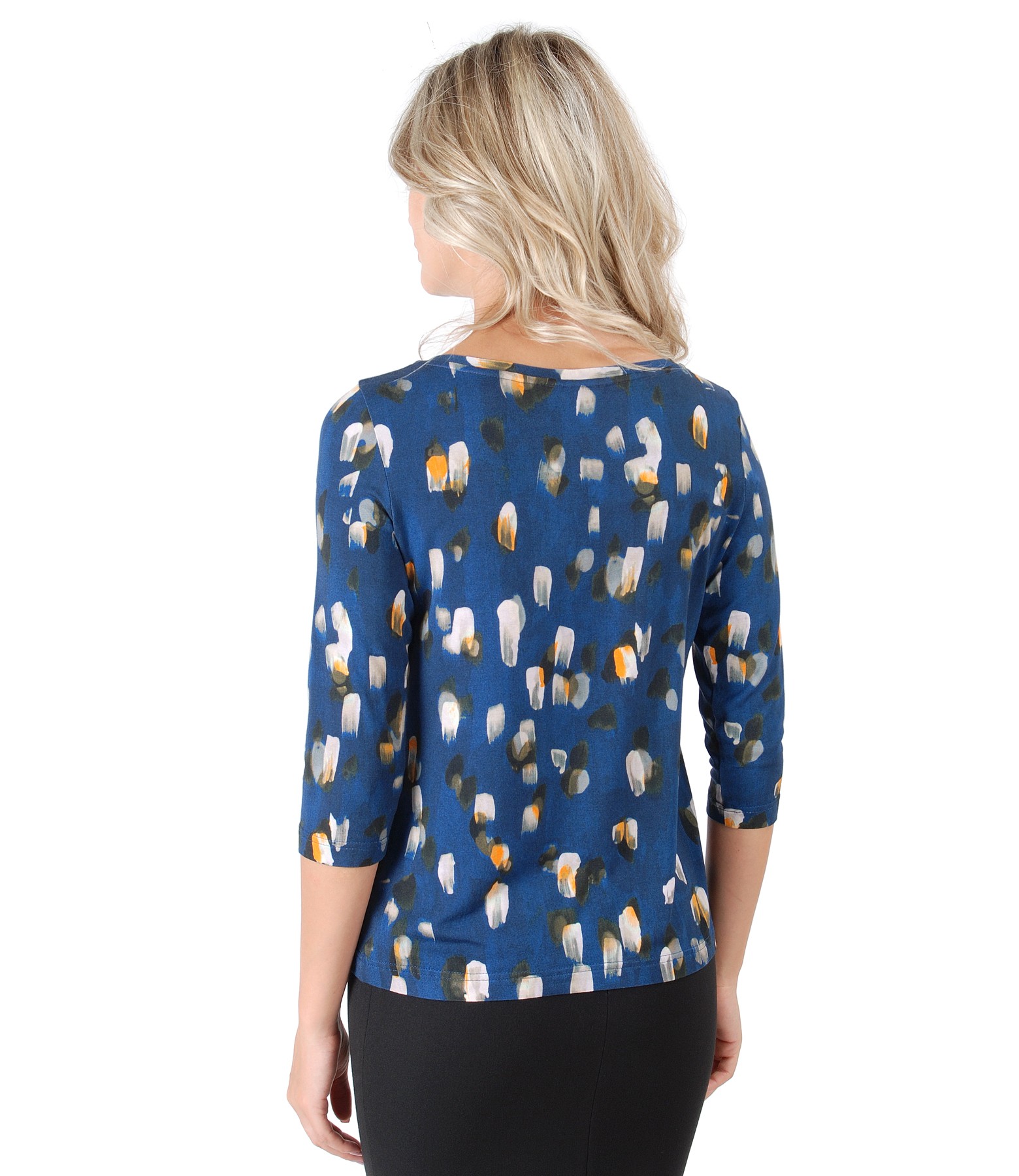 Bluza din jerse elastic imprimat digital, cu decolteu barcuta si maneci 3/4.