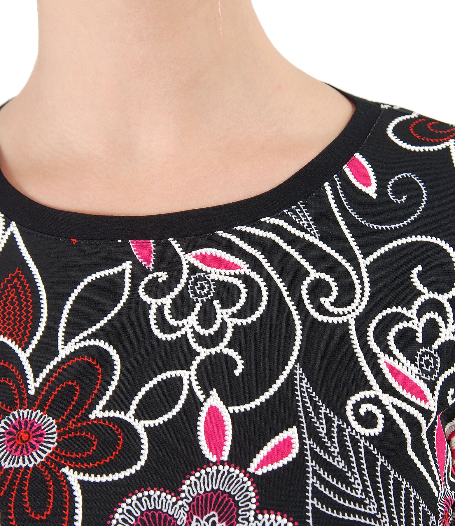 Bluza din jerse elastic imprimat in relief, cu maneci scurte si garnitura.