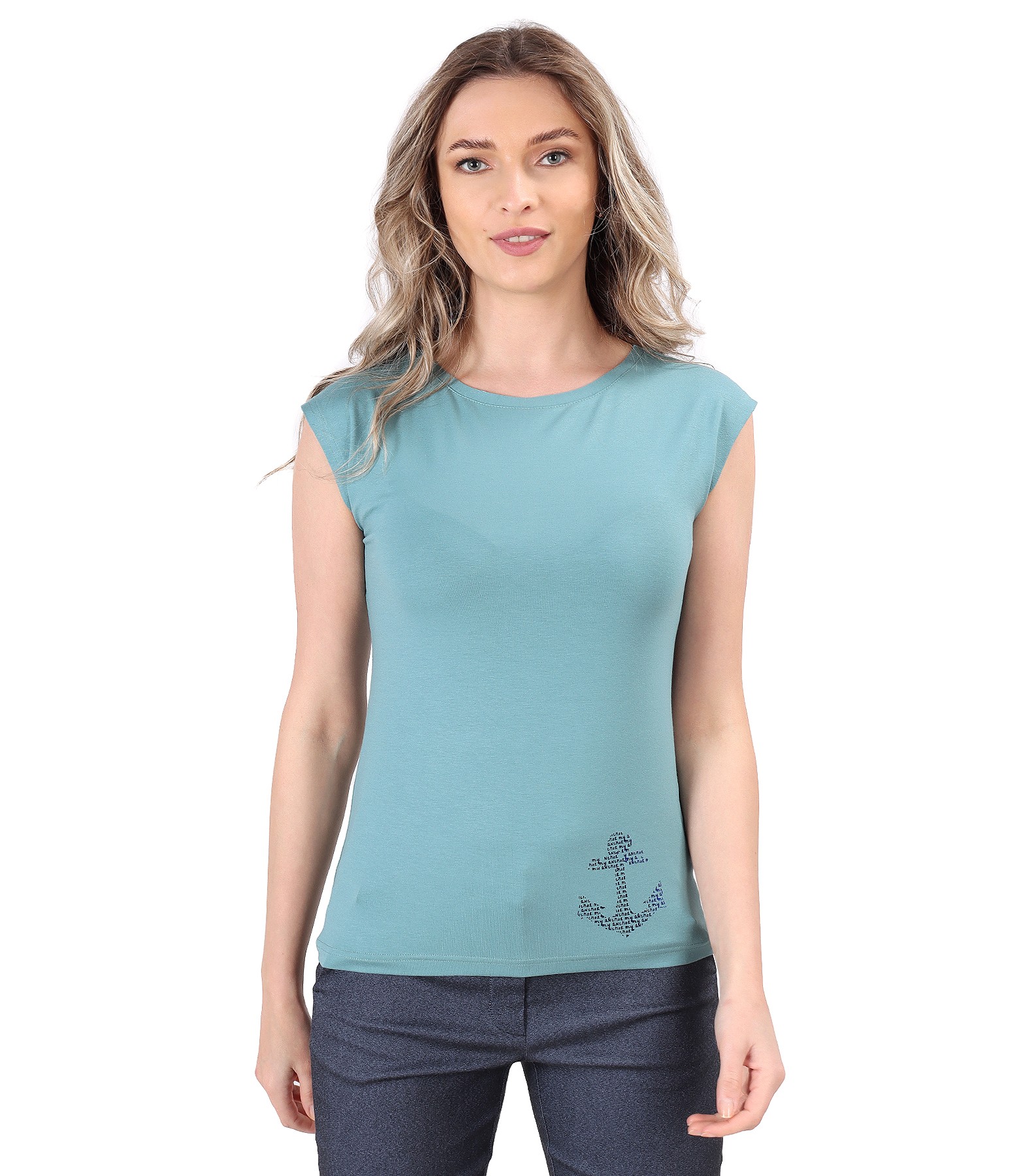 Bluza din jerse elastic uni cu ancora decorativa (Albastru deschis), marimea