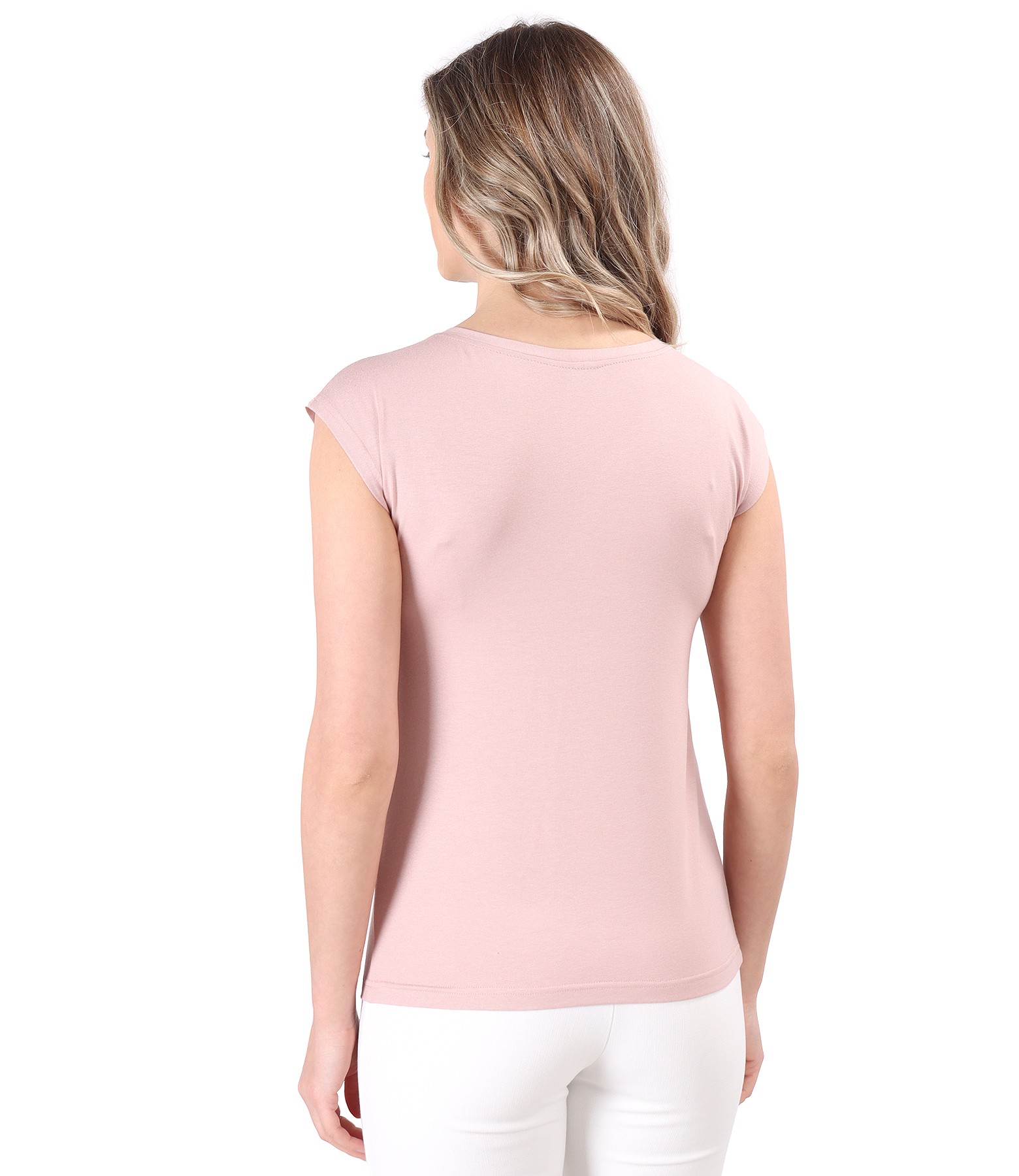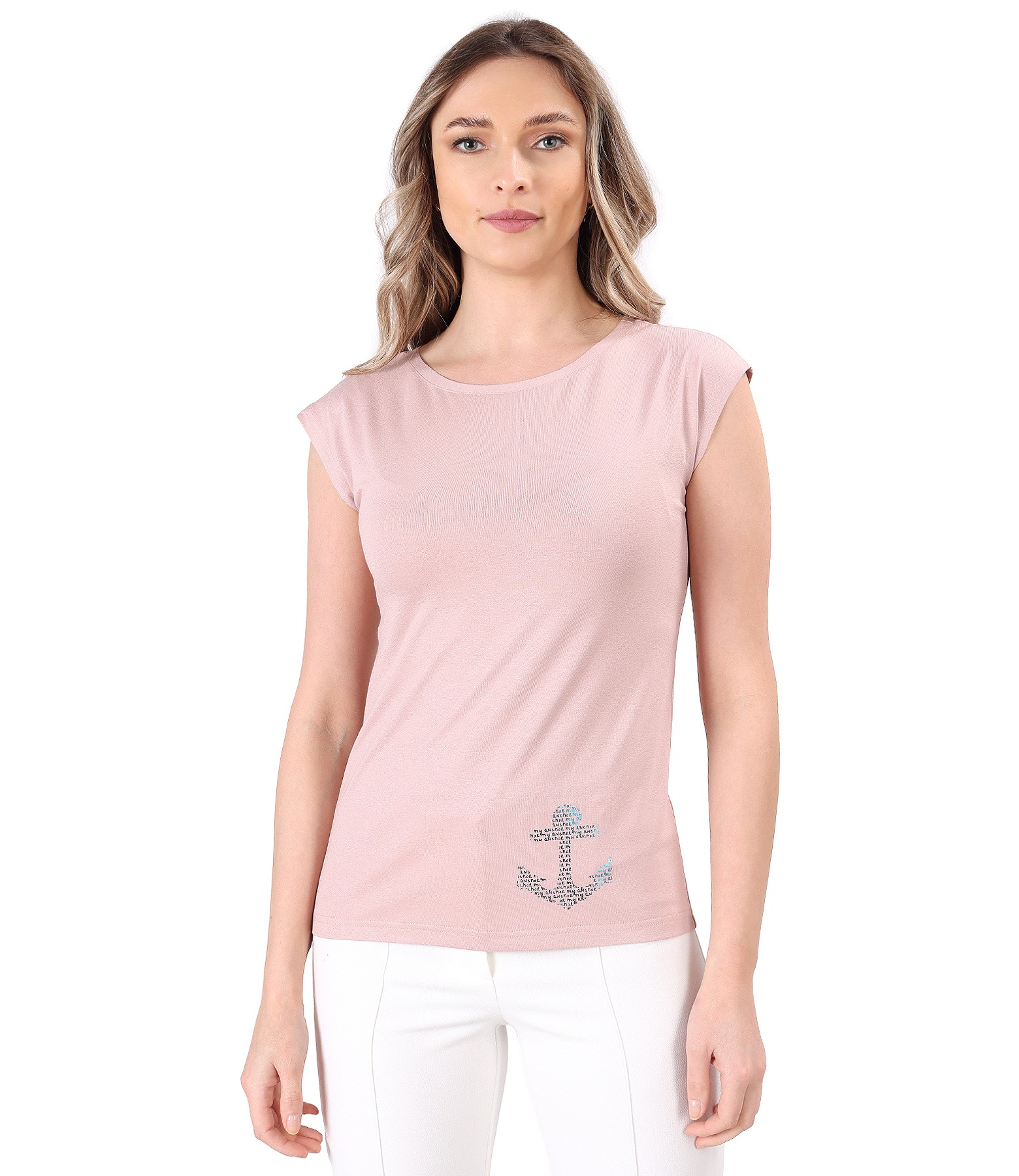 Bluza din jerse elastic uni cu ancora decorativa (Roz prafuit), marimea