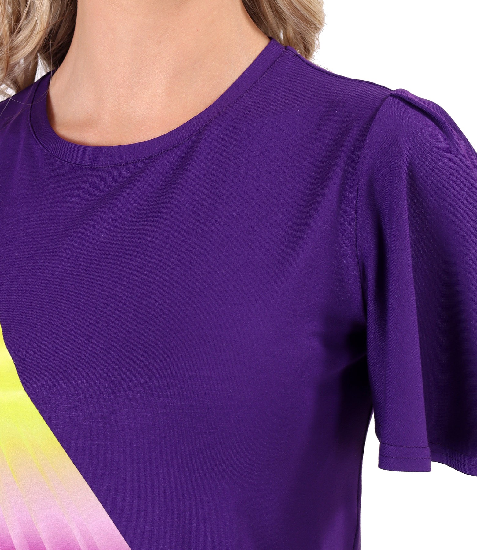 Bluza din jerse elastic uni cu maneci ample, imprimata pe fata prin serigrafie si cu decolteu rotund.