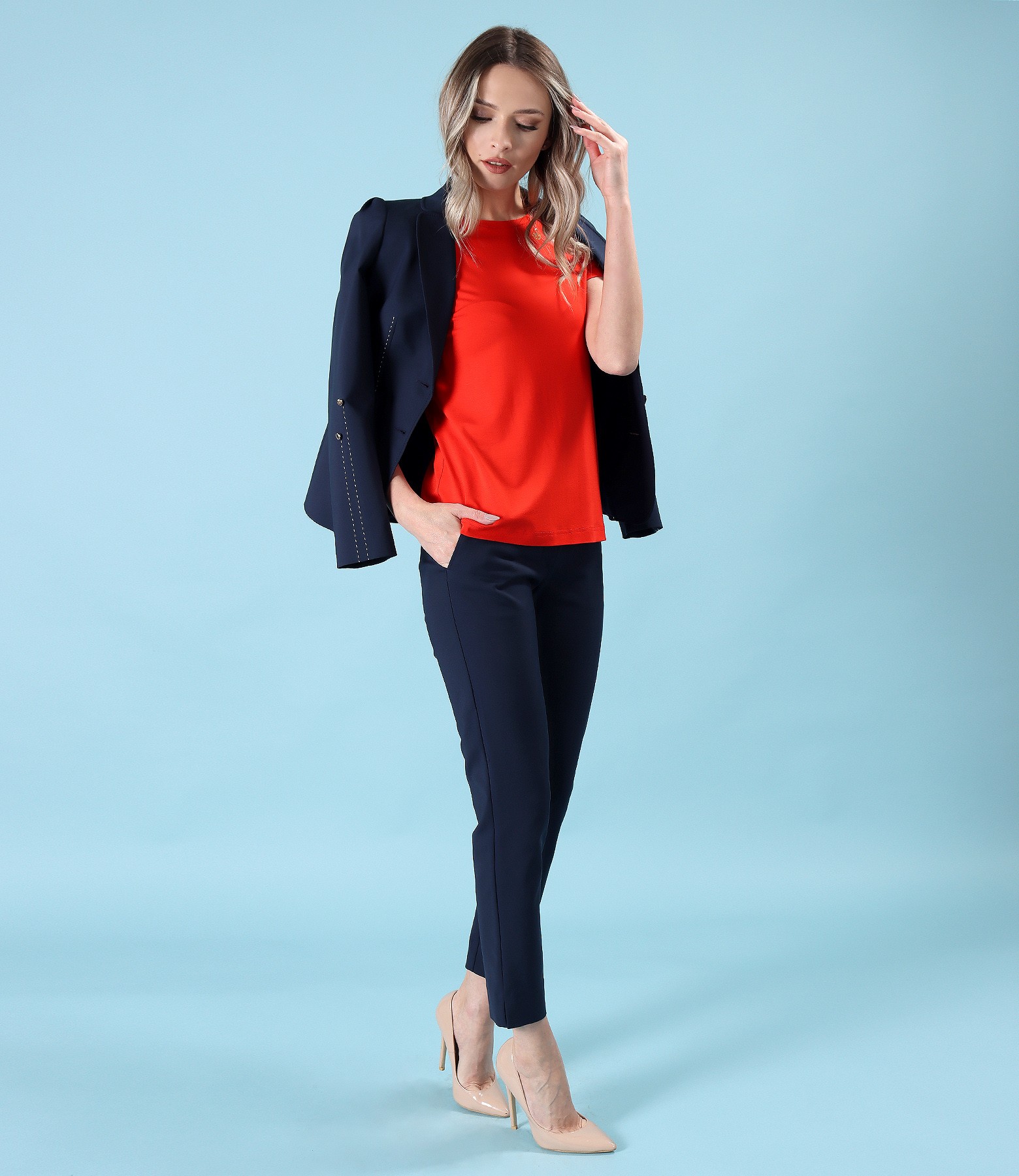 Bluza din jerse elastic uni cu maneci scurte (Rosu corai), marimea