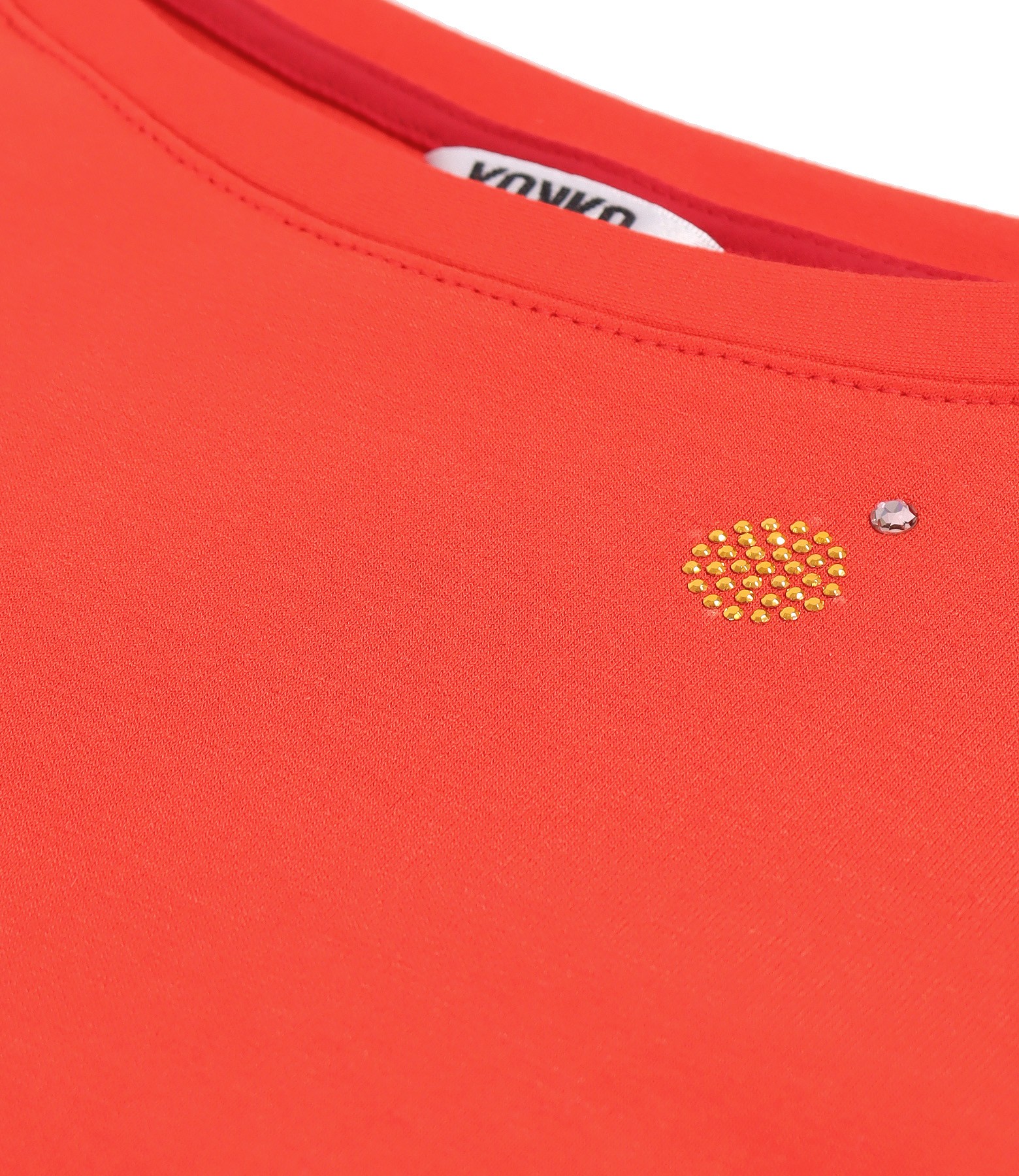 Bluza din jerse elastic uni cu maneci scurte si decolteu rotund cu aplicatie de cristale.