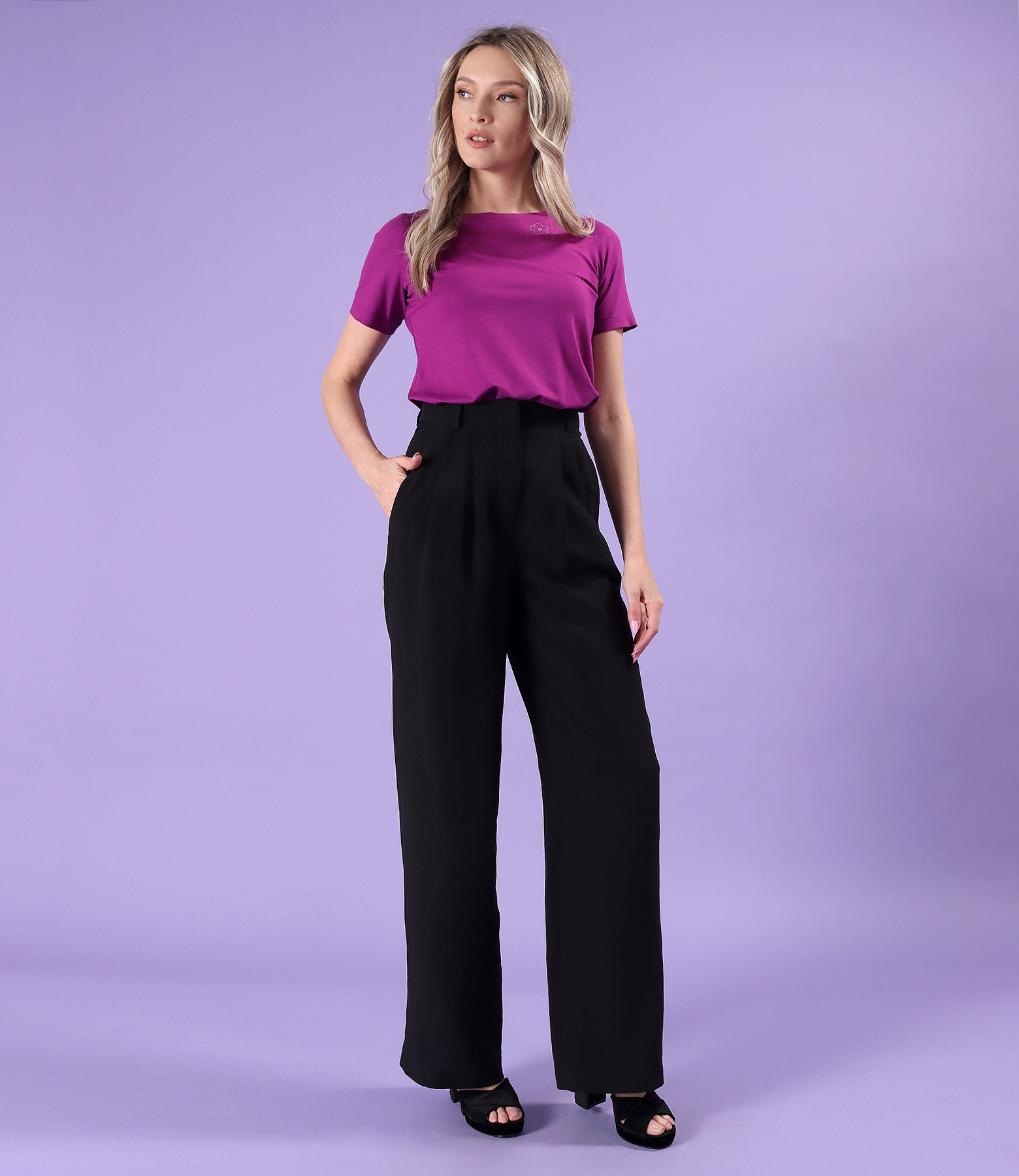 Bluza din jerse elastic uni cu maneci scurte (Magenta), marimea