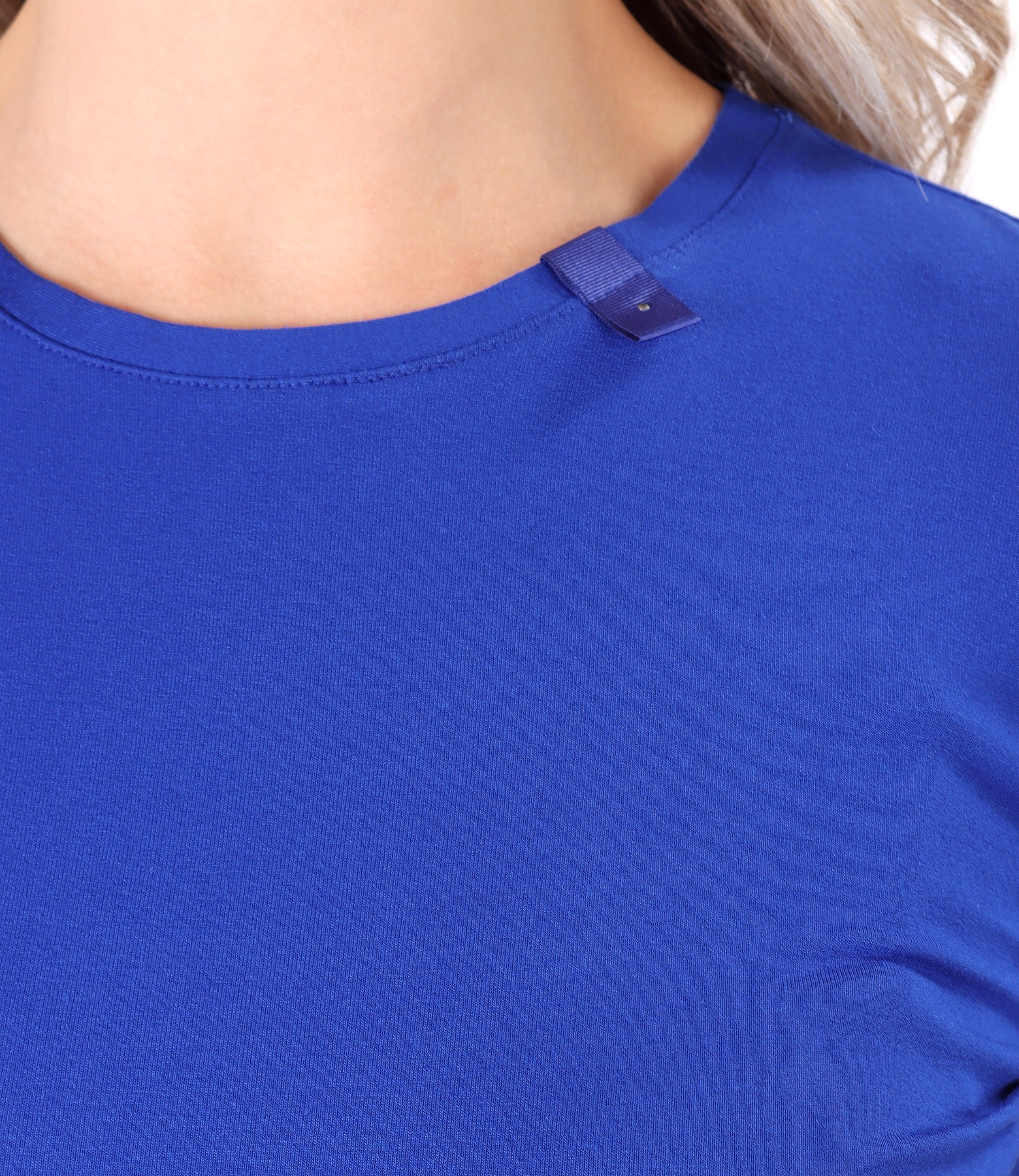 Bluza din jerse elastic uni cu rips la decolteu si maneca (Albastru Royal), marimea