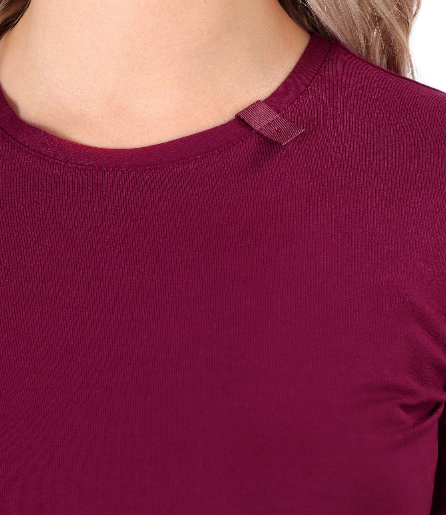 Bluza din jerse elastic uni cu rips la decolteu si maneca (Rosu Grena), marimea