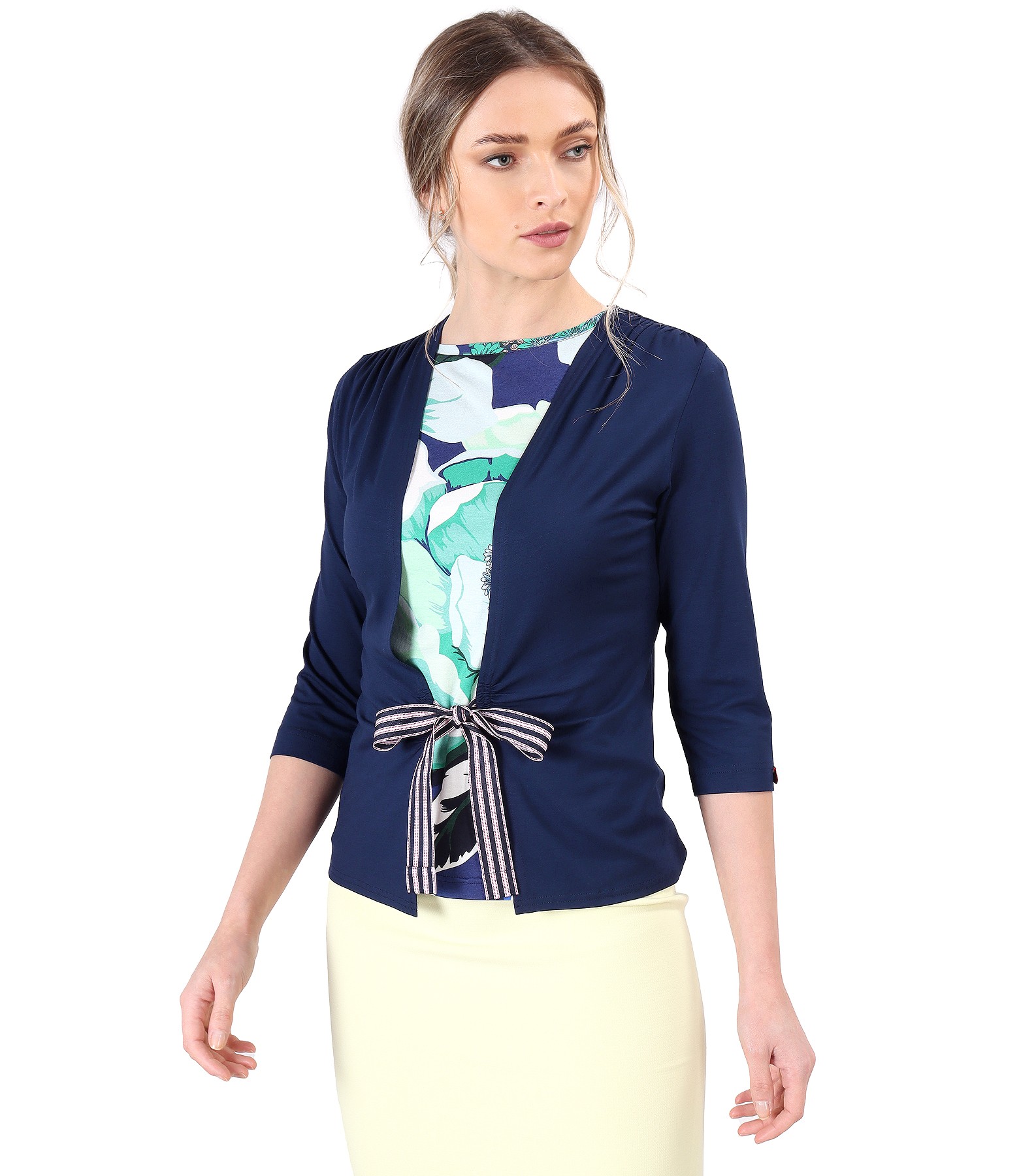 Bluza din jerse legata cu cordon din rips (Bleumarin), marimea