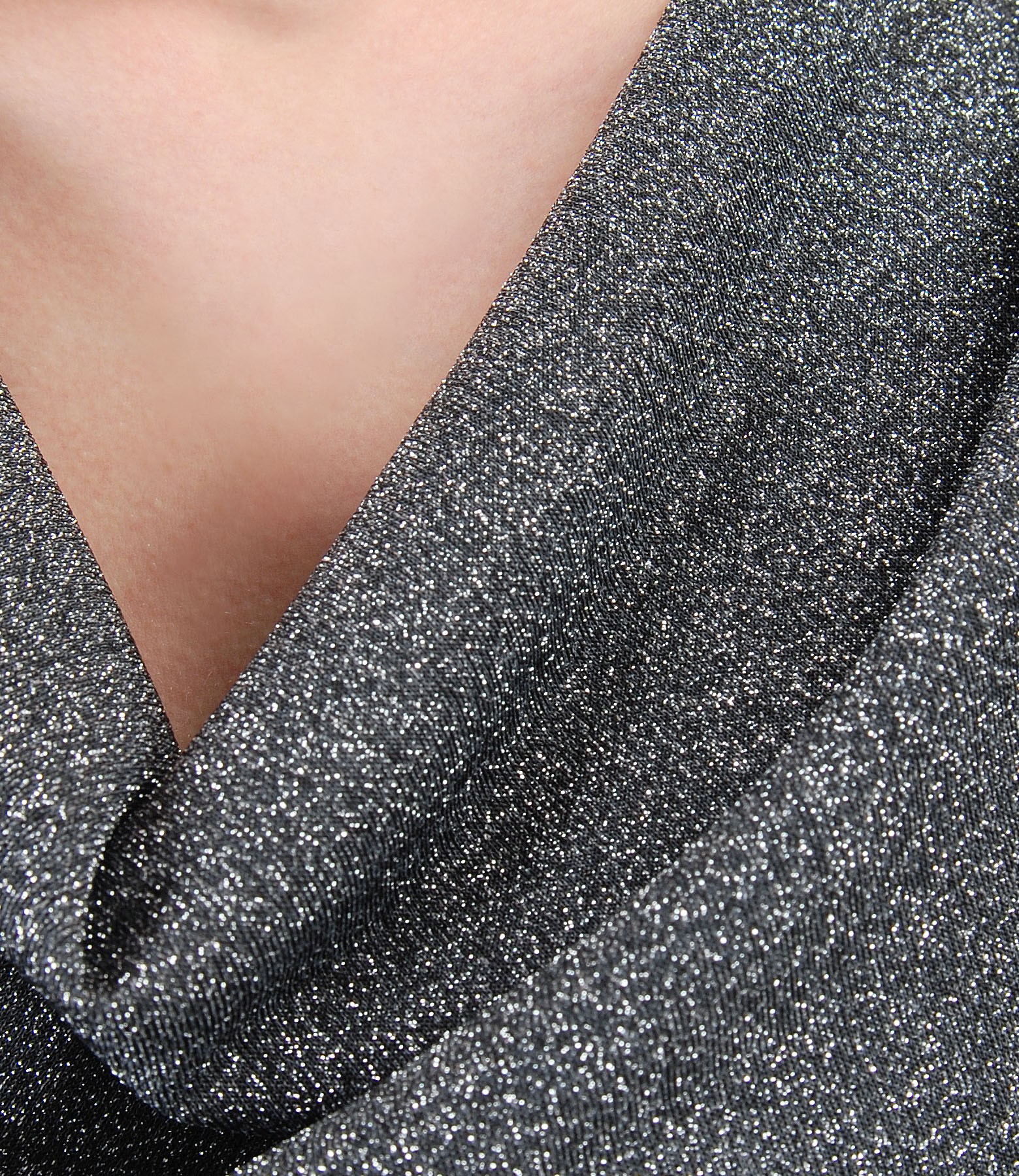 Bluza din jerse elastic, cu maneci lungi si decolteul in falduri.