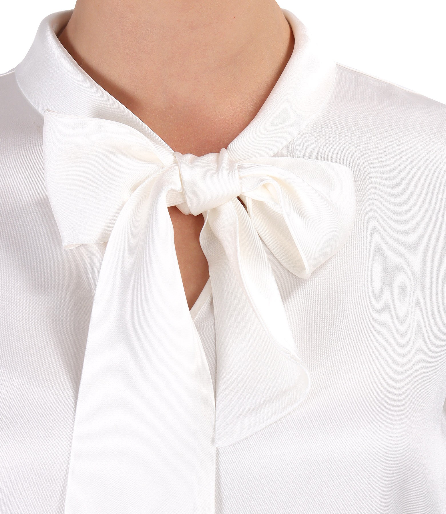 Bluza din saten de viscoza cu guler tip esarfa (Alb Ecru), marimea