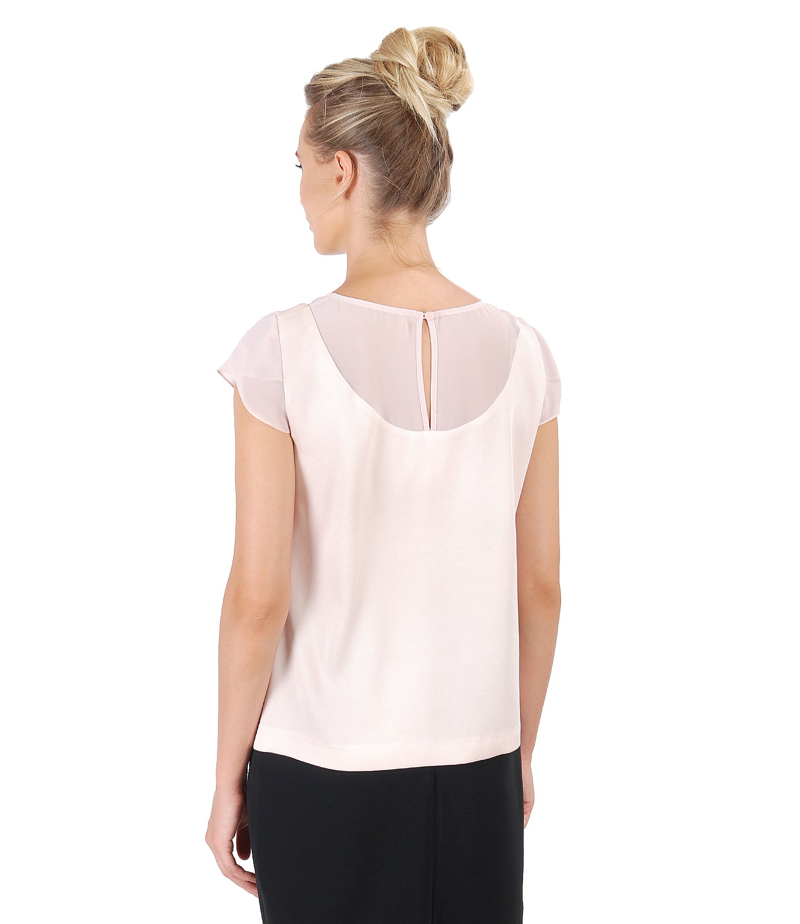 Bluza din viscoza cu garnitura din voal (Roz nud), marimea