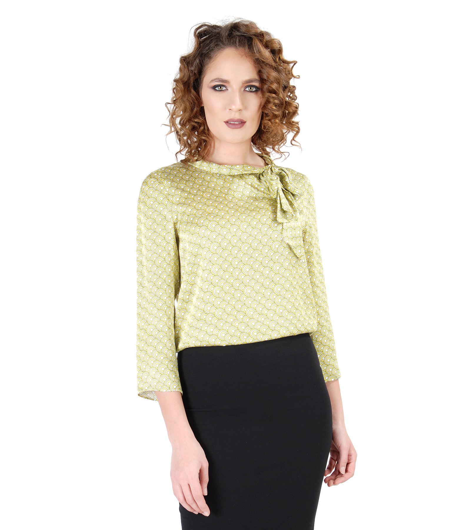 Bluza din viscoza cu guler gen esarfa (Imprimeu), marimea