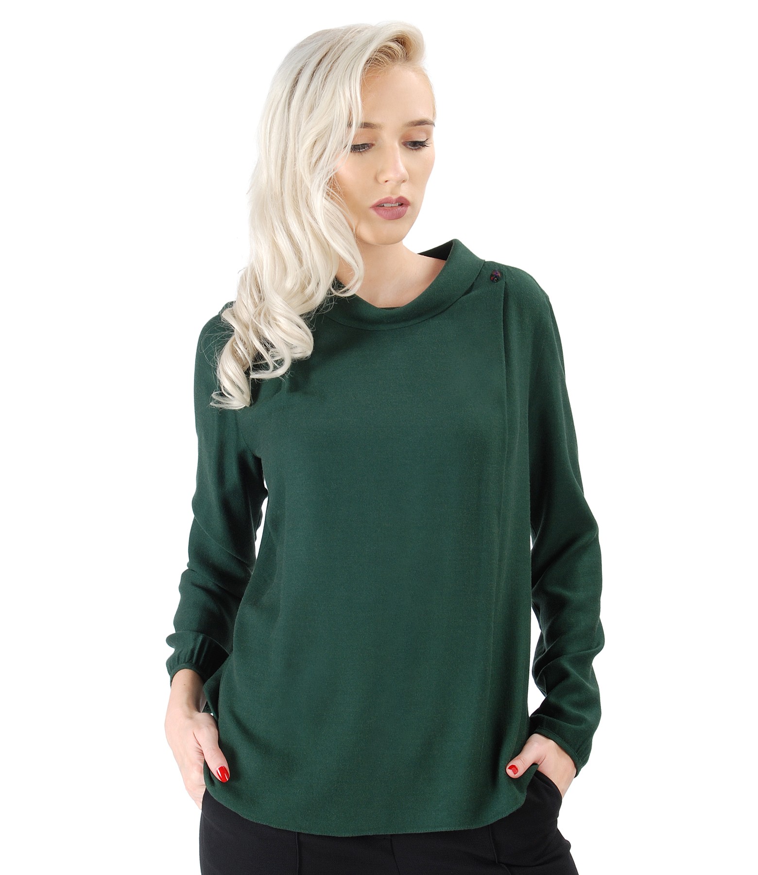 Bluza din viscoza cu lana si aplicatie de cristale (Verde pin), marimea