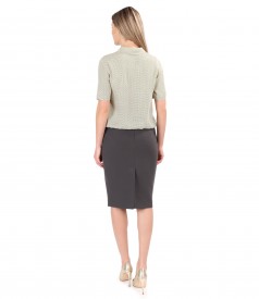 Bluza din viscoza cu guler tip esarfa cu fusta din stofa elastica