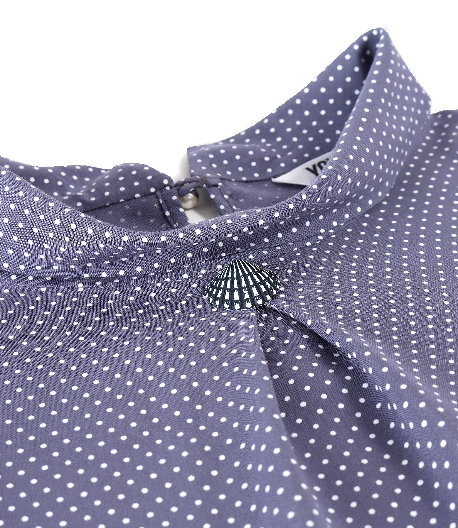 Bluza din viscoza imprimata cu picouri si guler rotund