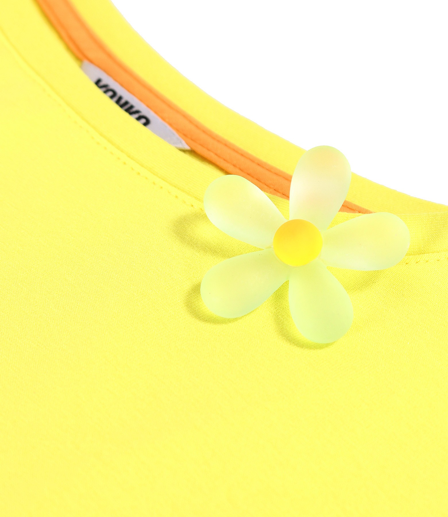 Bluza eleganta din jerse elastic cu floare la decolteu (Galben), marimea