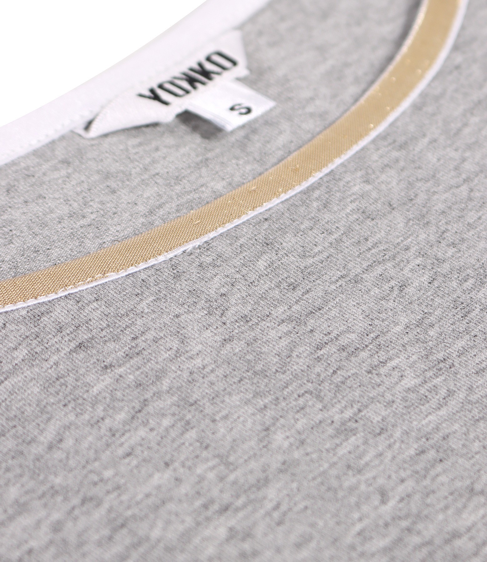 Bluza eleganta din jerse elastic de viscoza, cu maneci 3/4 si decolteu rotund cu garnitura din elastic auriu.