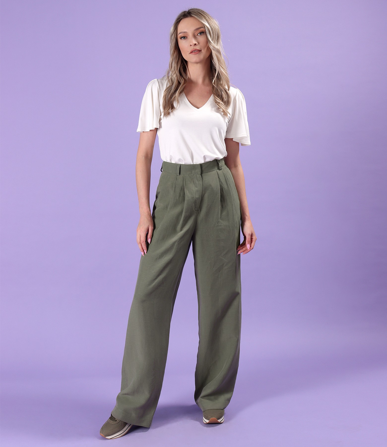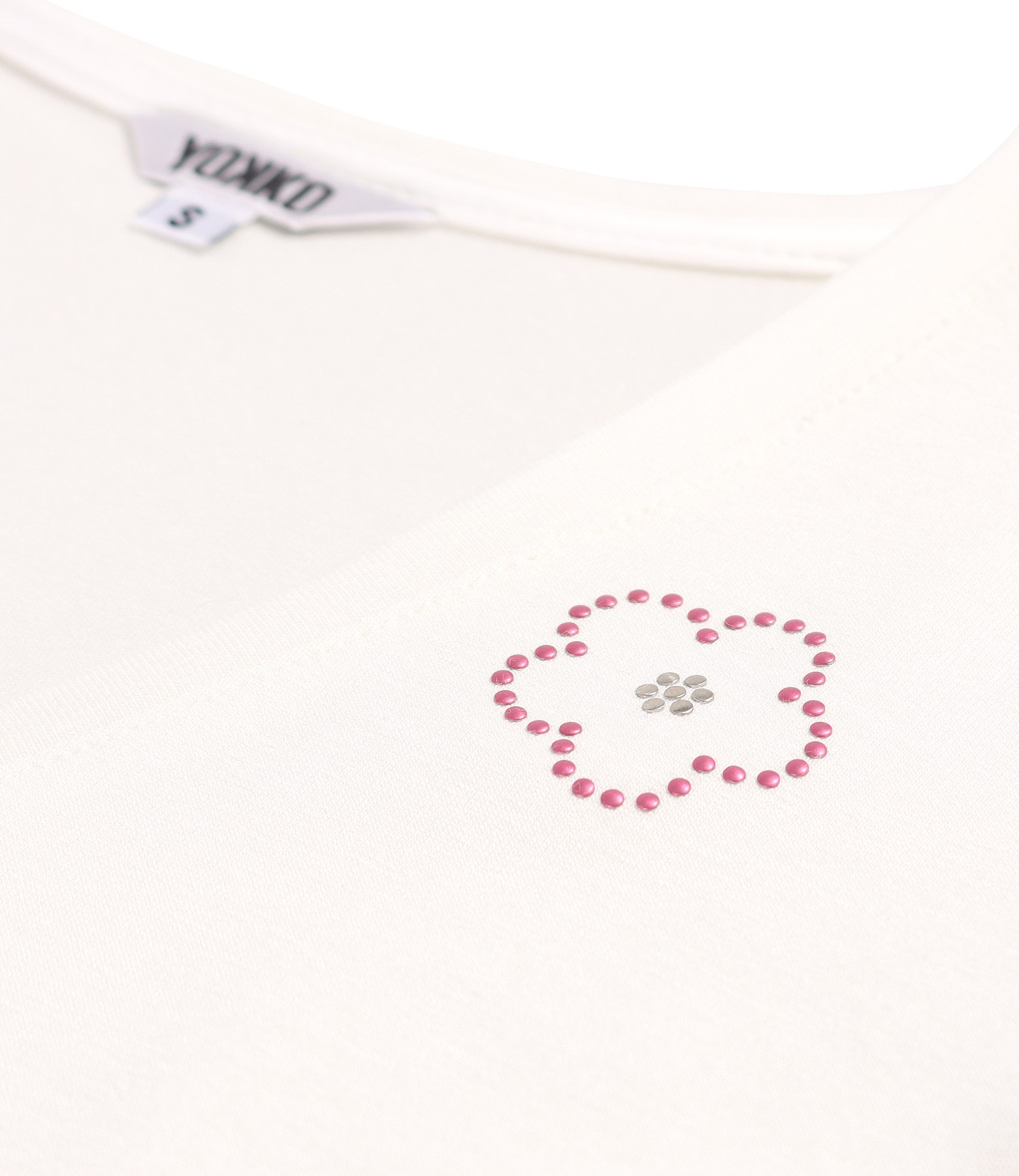 Bluza eleganta din jerse elastic cu maneci scurte ample, decolteu in V cu aplicatie decorativa in forma de floare.