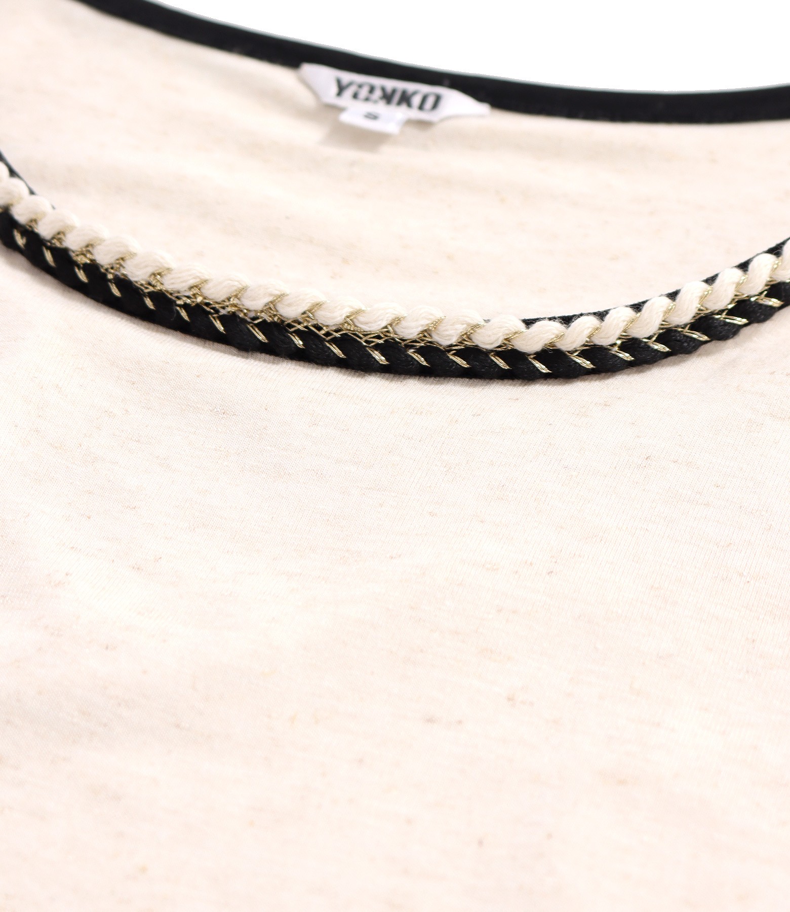 Bluza eleganta din jerse elastic melanj cu in, cu decolteu rotund cu pasmanterie si maneci scurte ample.