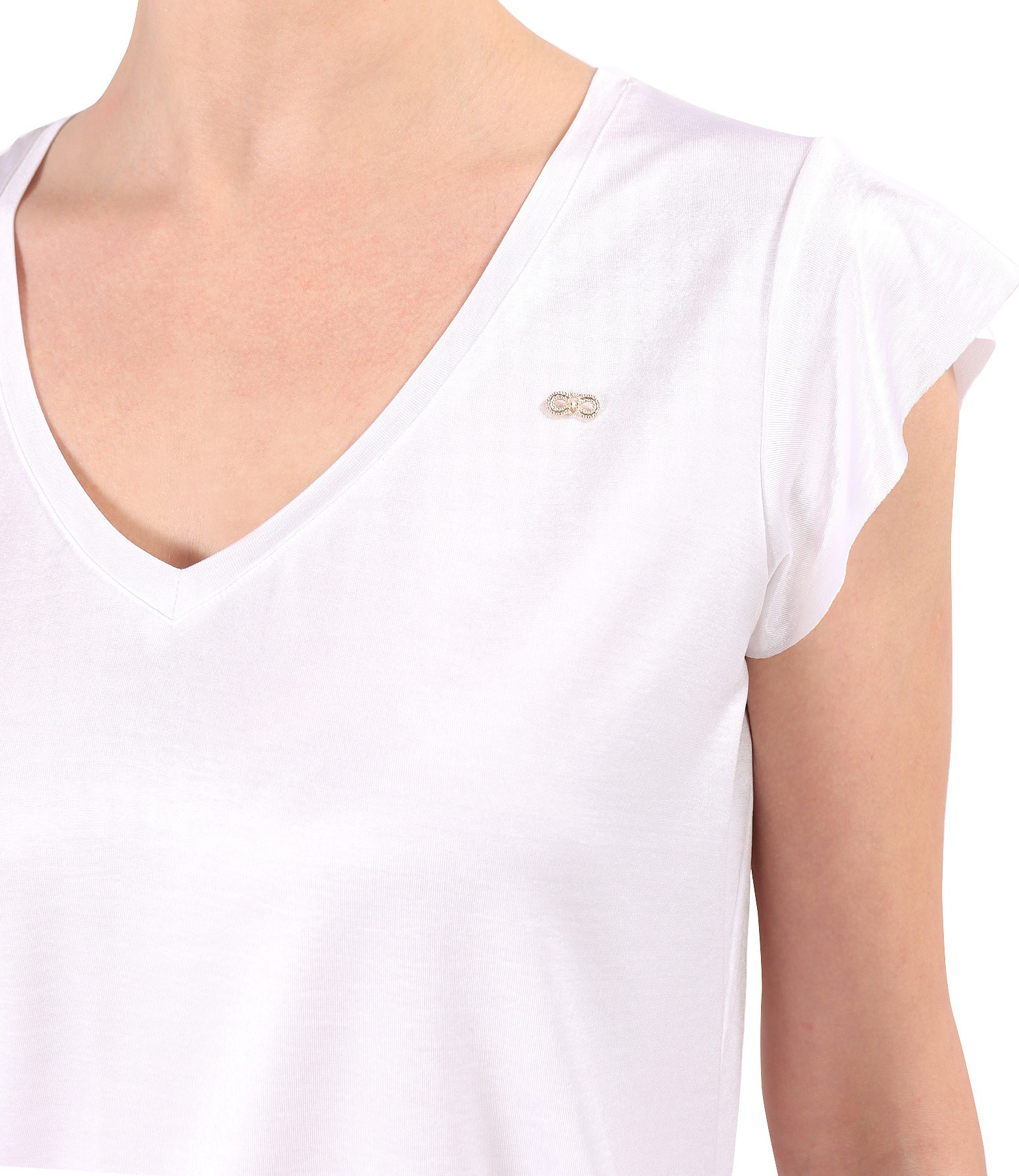 Bluza eleganta din jerse elastic satinat, maneci scurte, decolteu in V si elastic in talie.