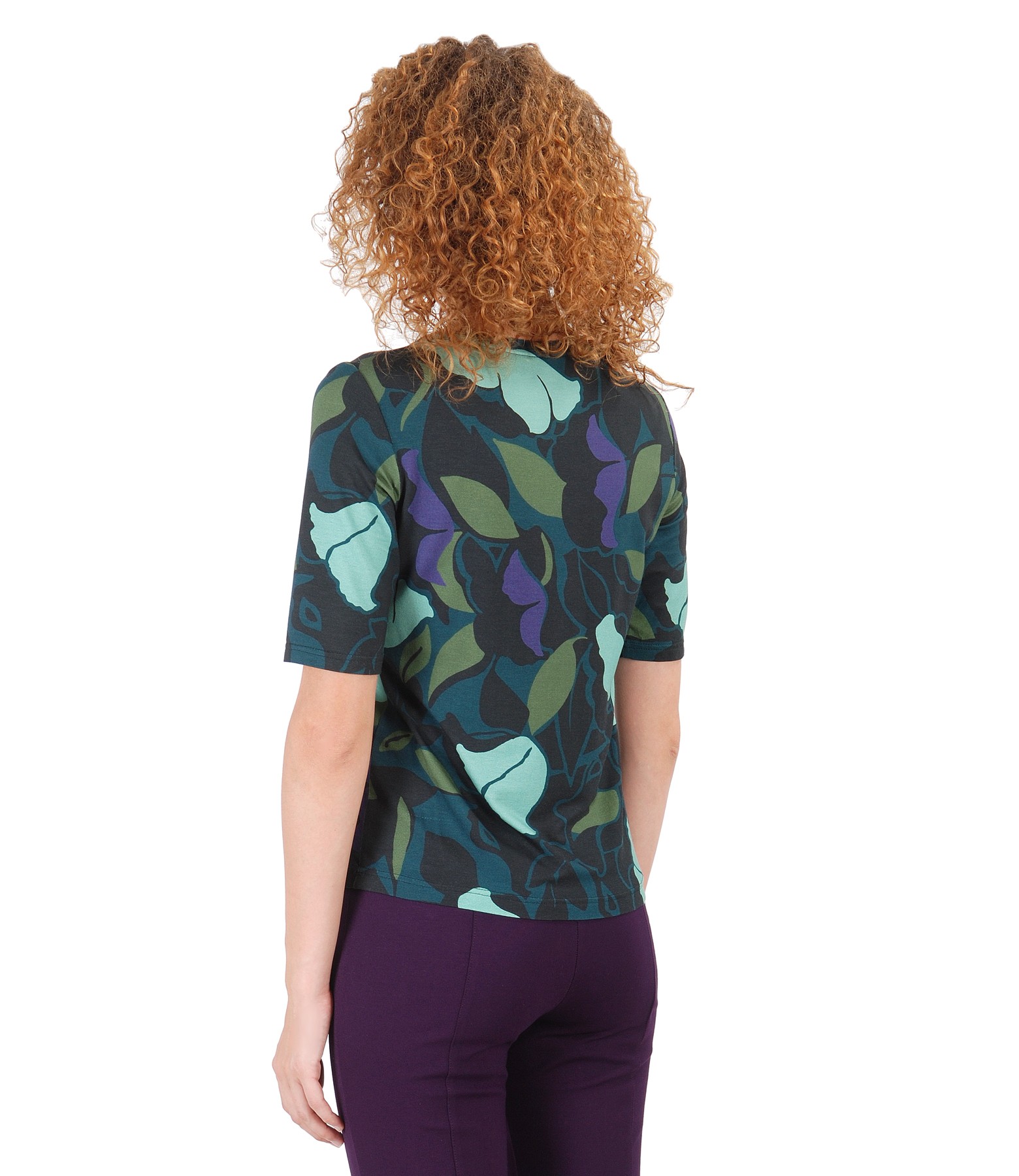 Tricou din jerse elastic, imprimat cu motive florale, cu maneci si garnitura pe decolteu rotund.