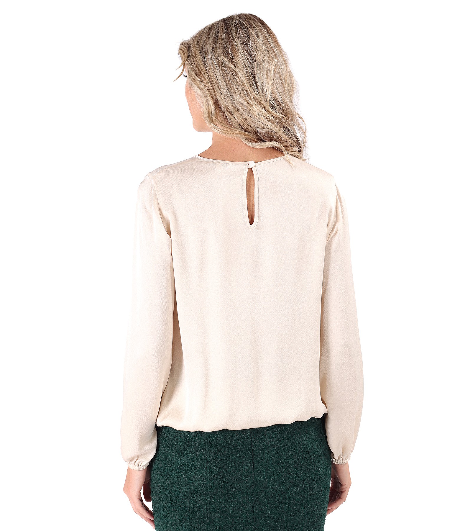 Bluza eleganta din saten de viscoza (Alb Ecru), marimea