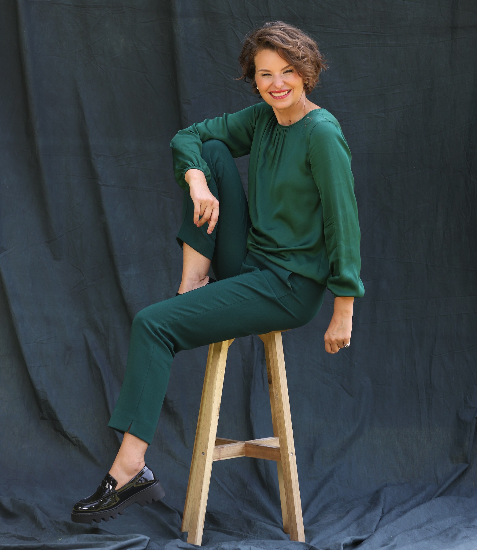 Bluza eleganta din saten de viscoza (Verde), marimea