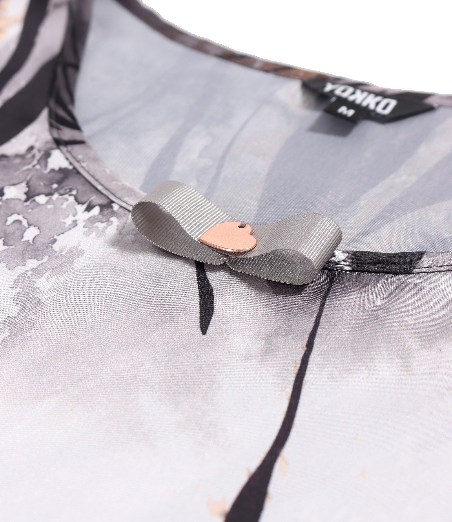 Bluza eleganta din satin imprimat digital cu motive florale (Gri), marimea