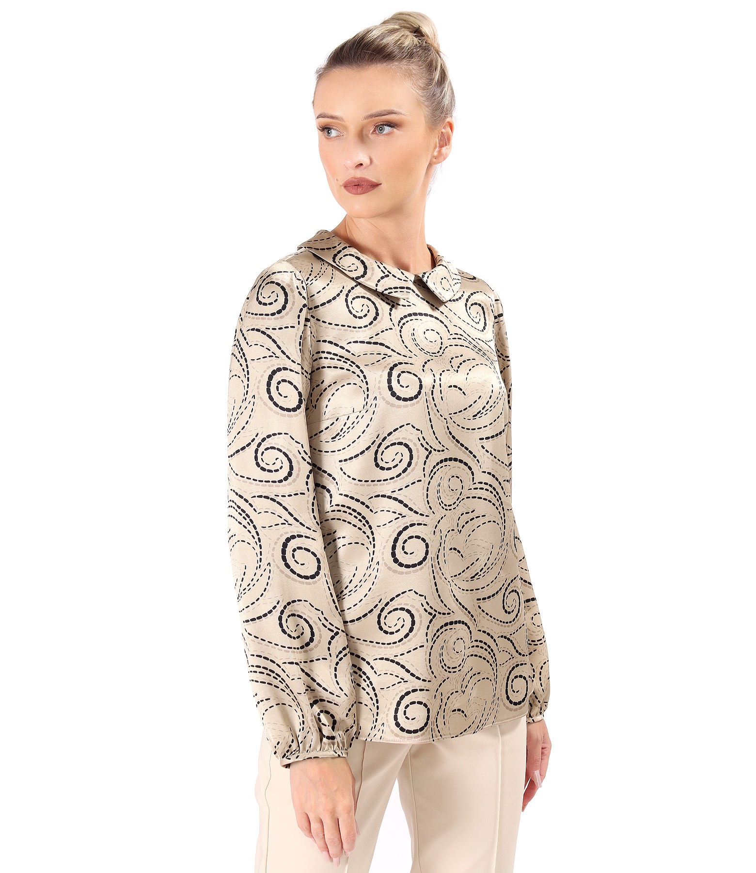 Bluza eleganta din viscoza satinata imprimata (Bej), marimea