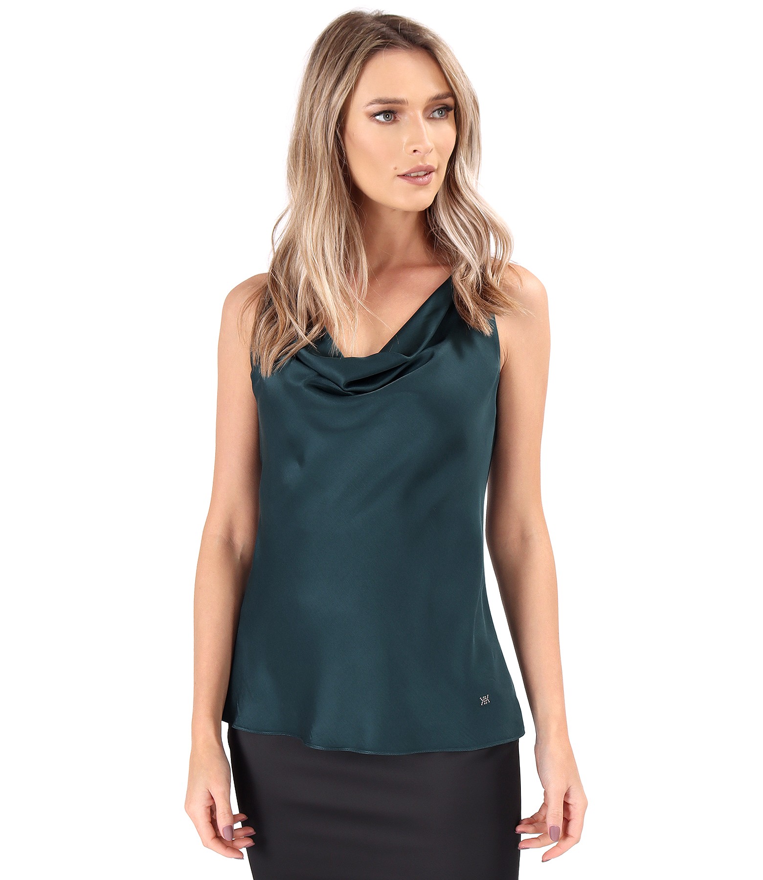 Bluza eleganta pe bie din saten de viscoza (Verde pin), marimea