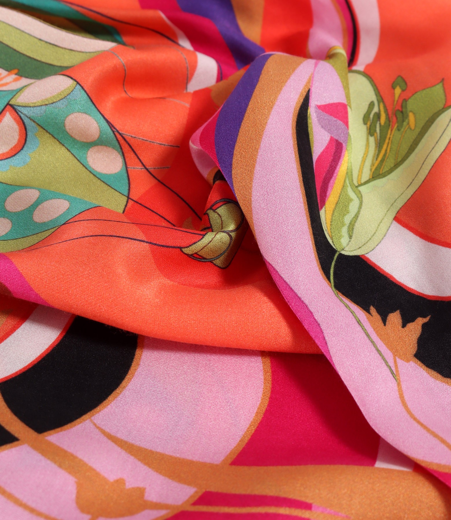 Bluza lejera cu fata din viscoza cu matase naturala imprimata (Rosu corai), marimea