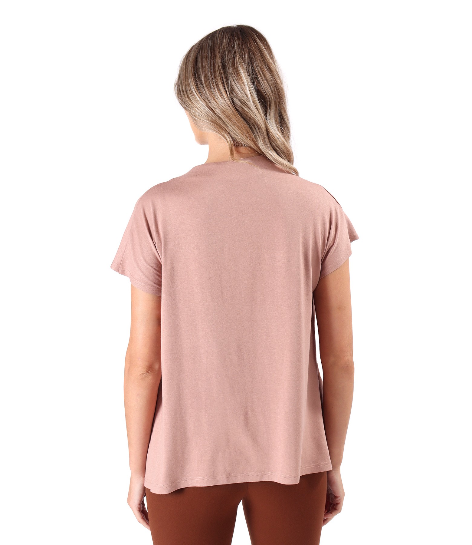 Bluza lejera cu pliuri pe umar din jerse elastic (Roz prafuit), marimea