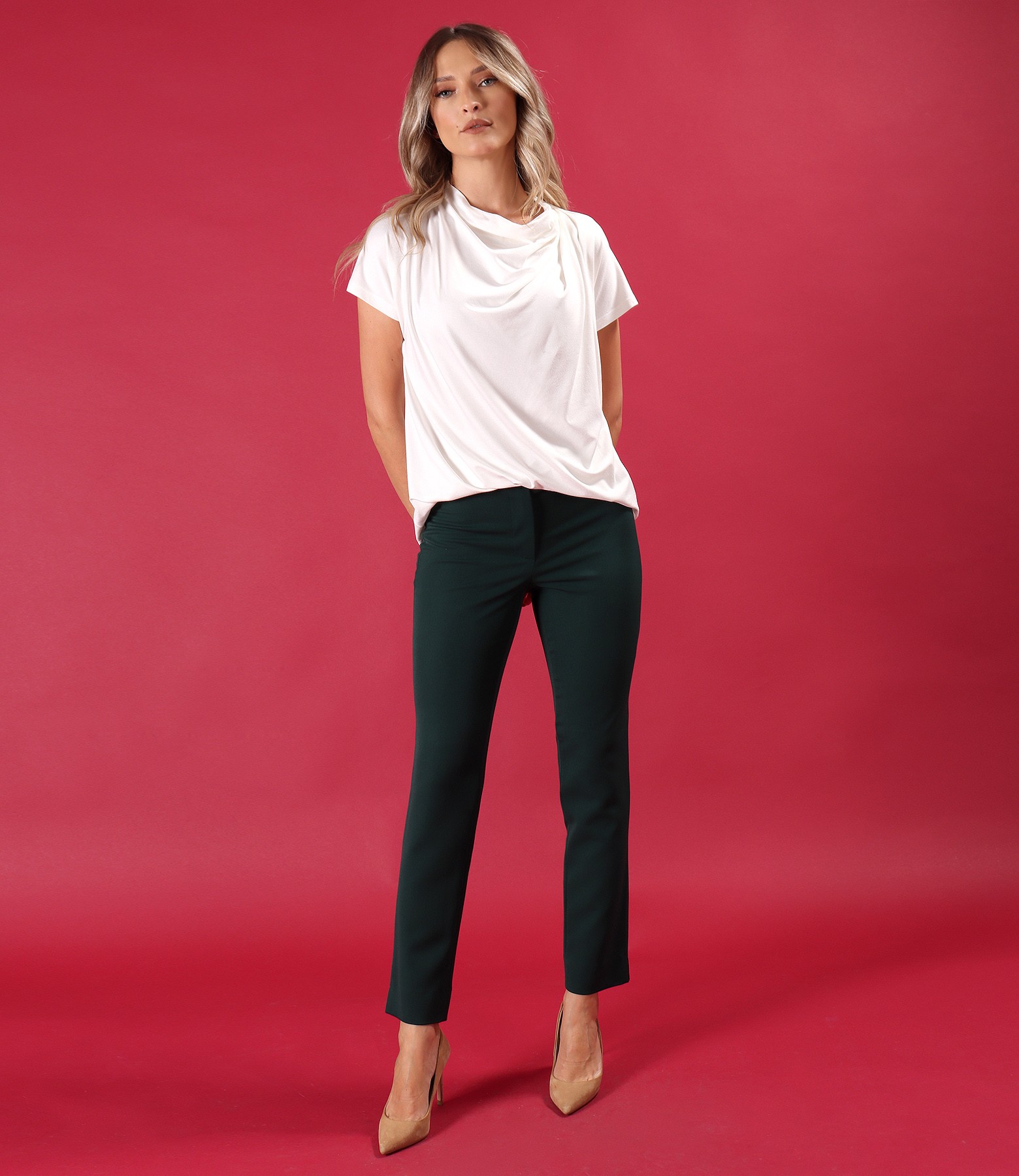 Bluza lejera cu pliuri pe umar din jerse elastic (Alb Ecru), marimea
