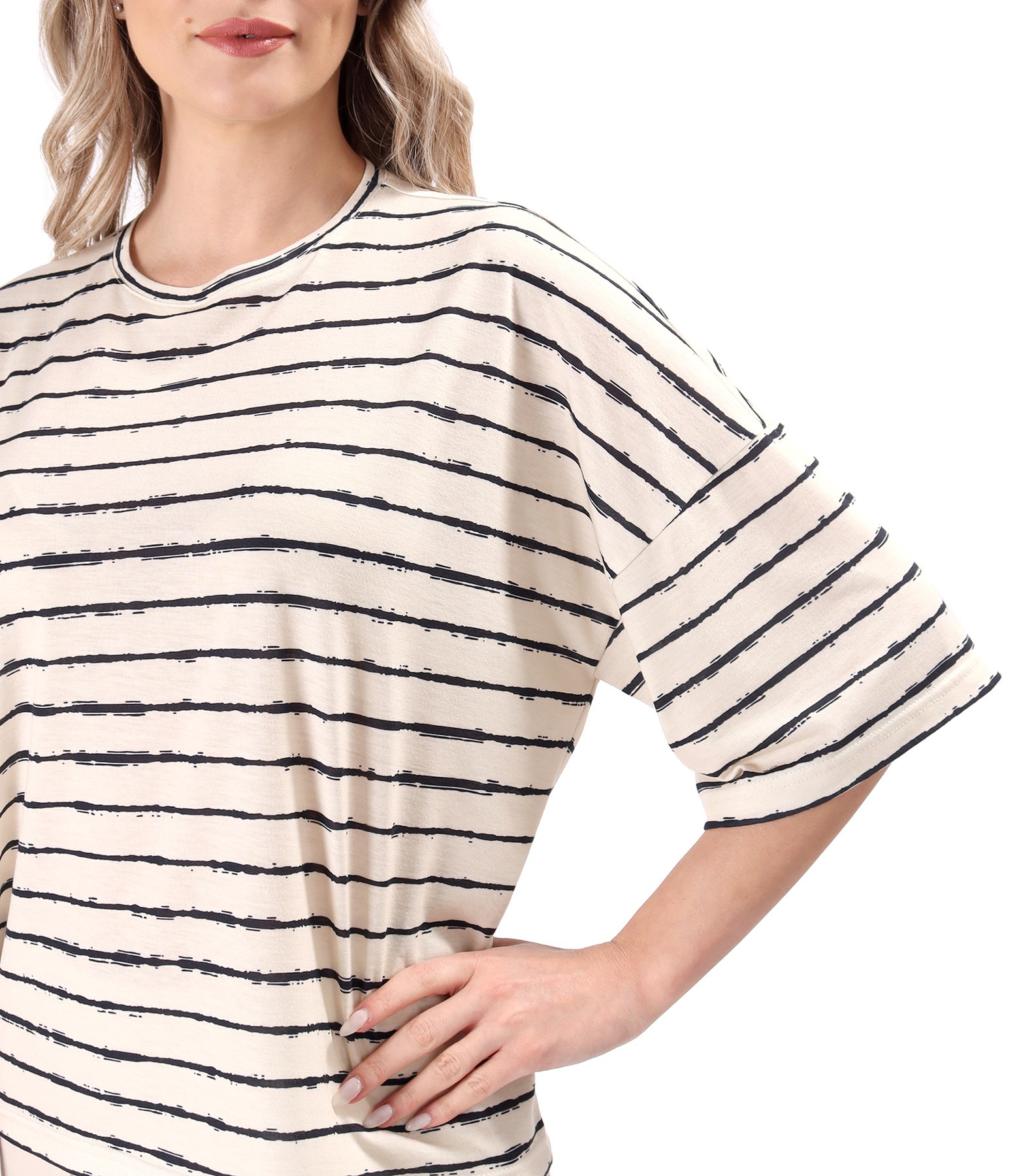 Bluza lejera din jerse elastic cu dungi, cu maneci cazute scurte si decolteu rotund.