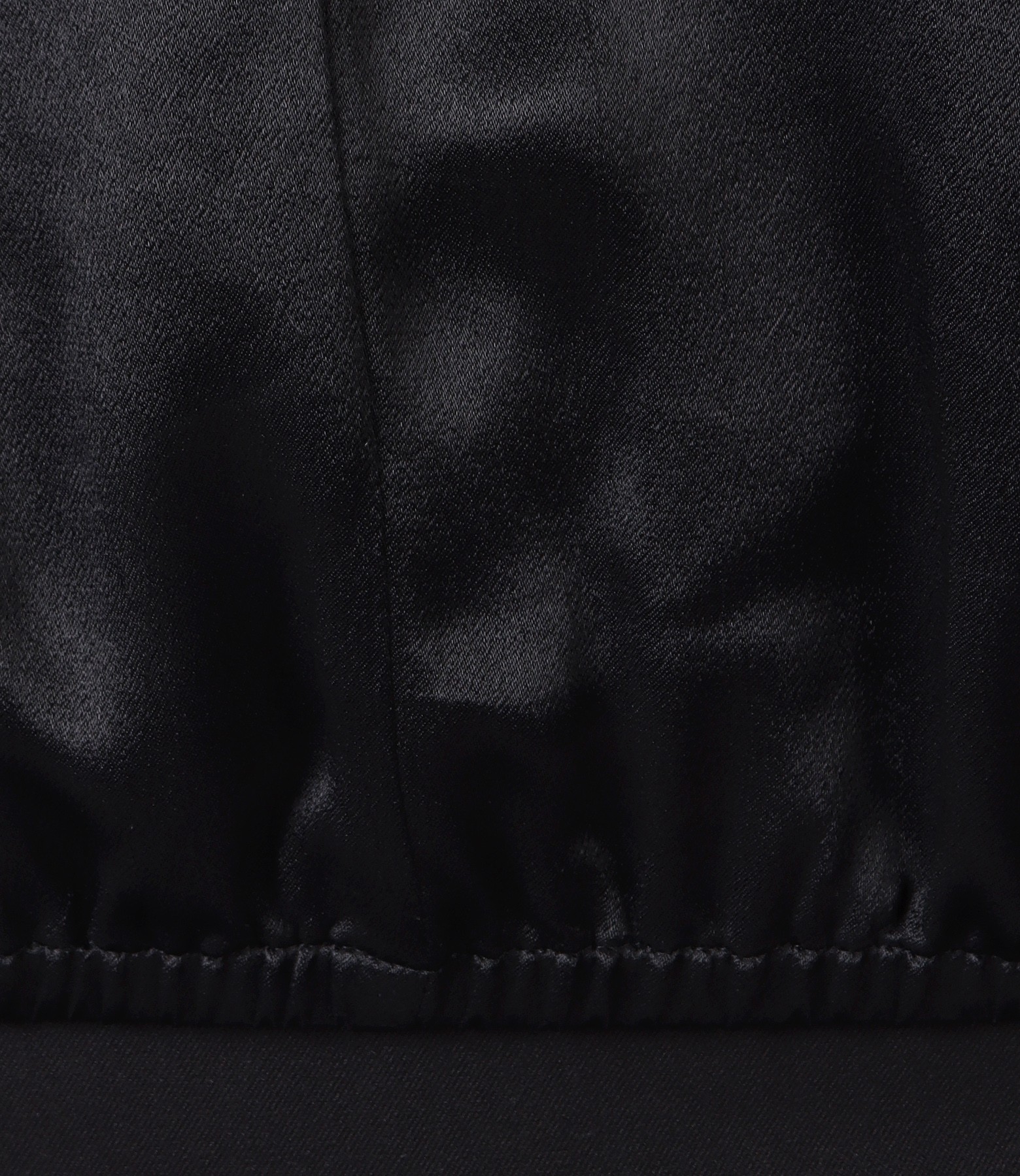 Bluza lejera din saten de viscoza uni, cu maneci cazute, decolteu in V si elastic la terminatie.
