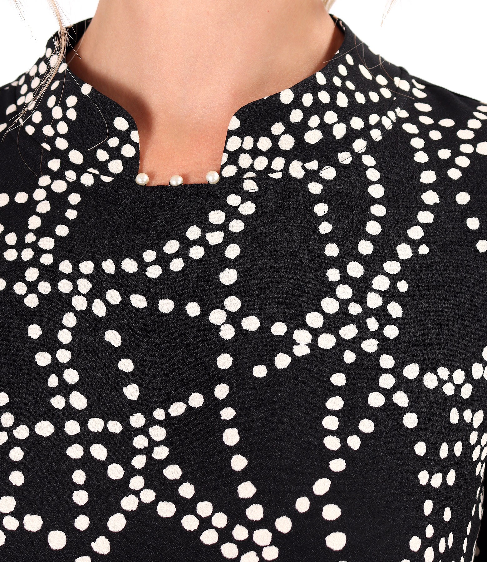 Bluza lejera din viscoza plina imprimata cu motive geometrice si cu perle la decolteu (Negru), marimea