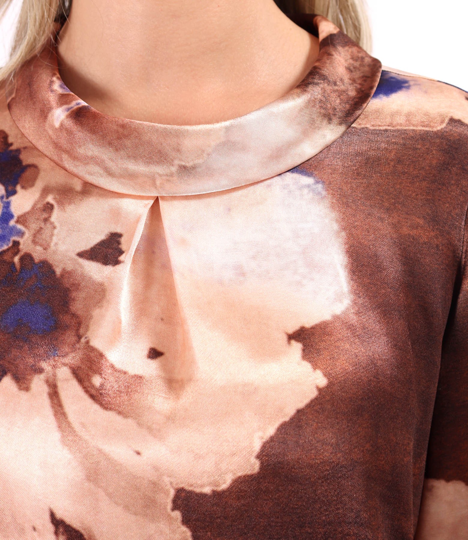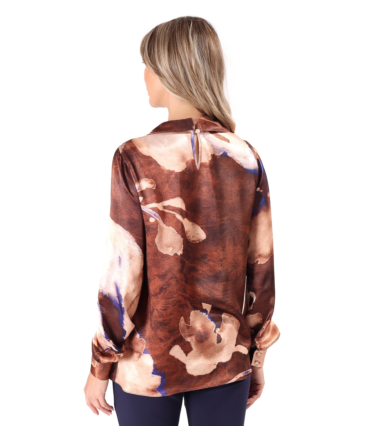 Bluza lejera din viscoza satinata imprimat cu flori supradimensionate (Maro), marimea