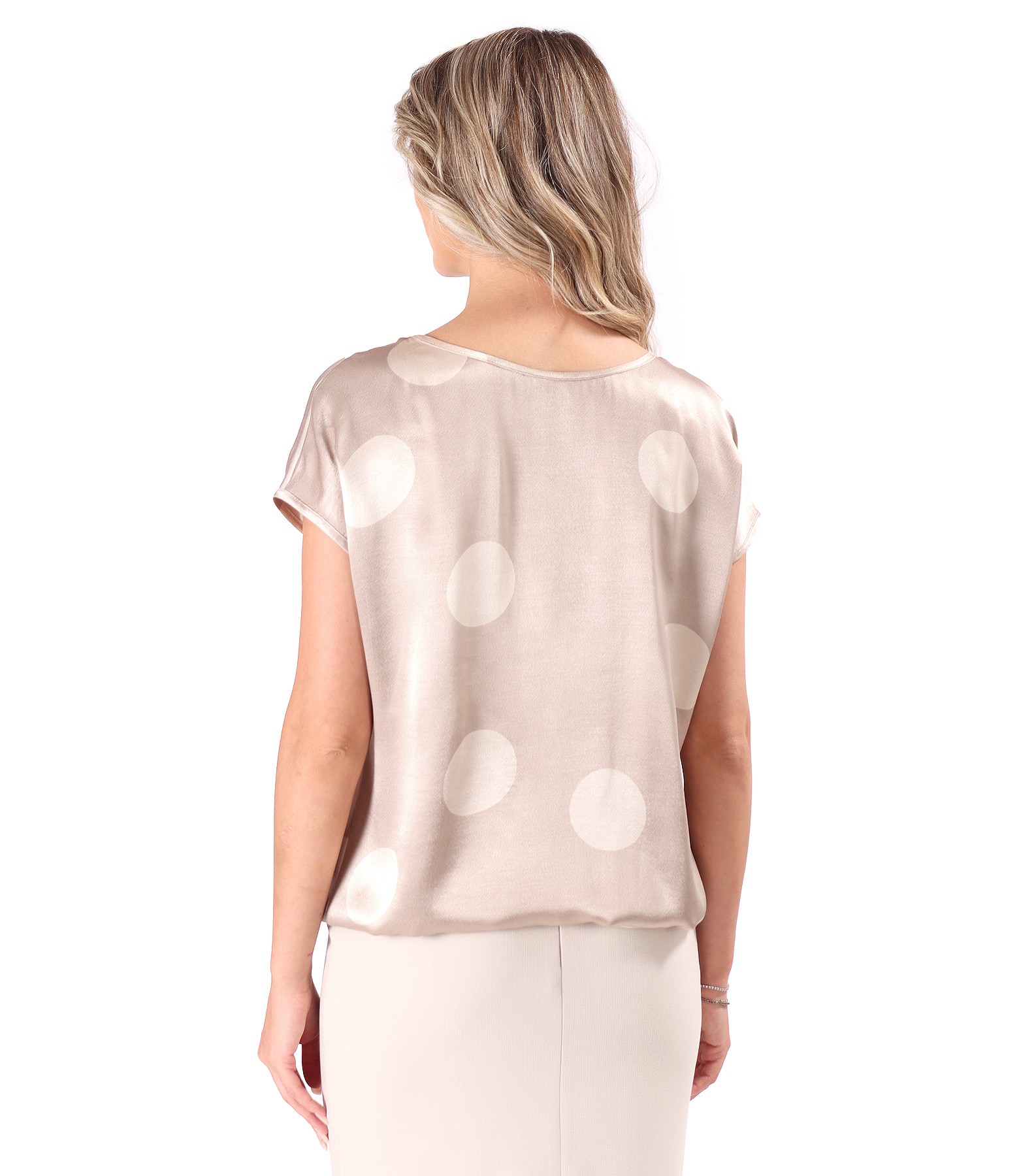 Bluza lejera din viscoza satinata imprimata cu buline (Bej), marimea