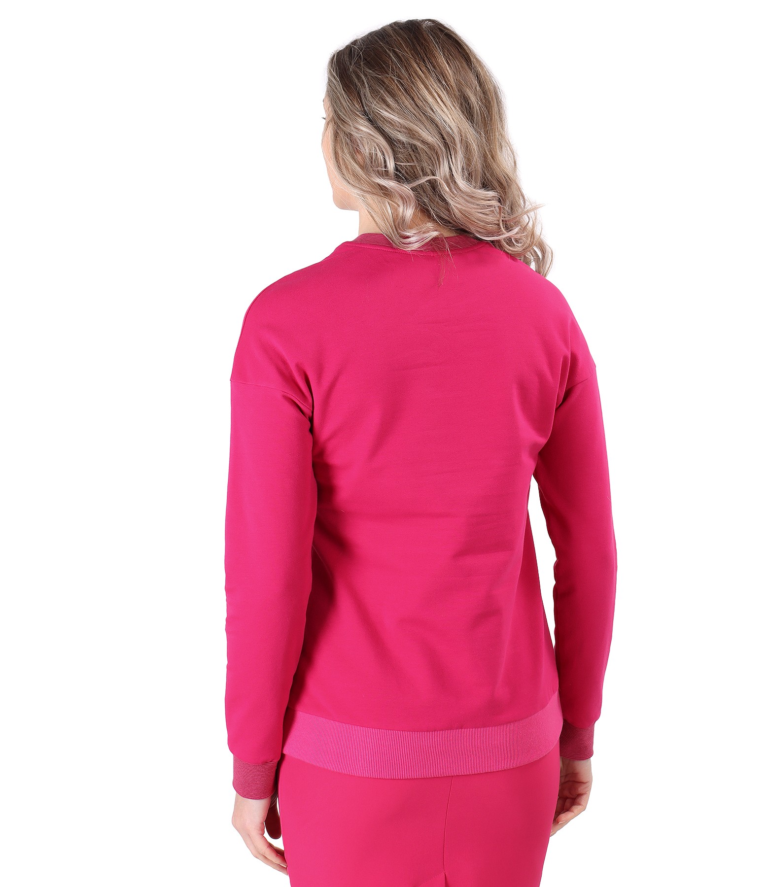 Bluza tip hanorac din bumbac cu cusatura decorativa (Ciclamen), marimea