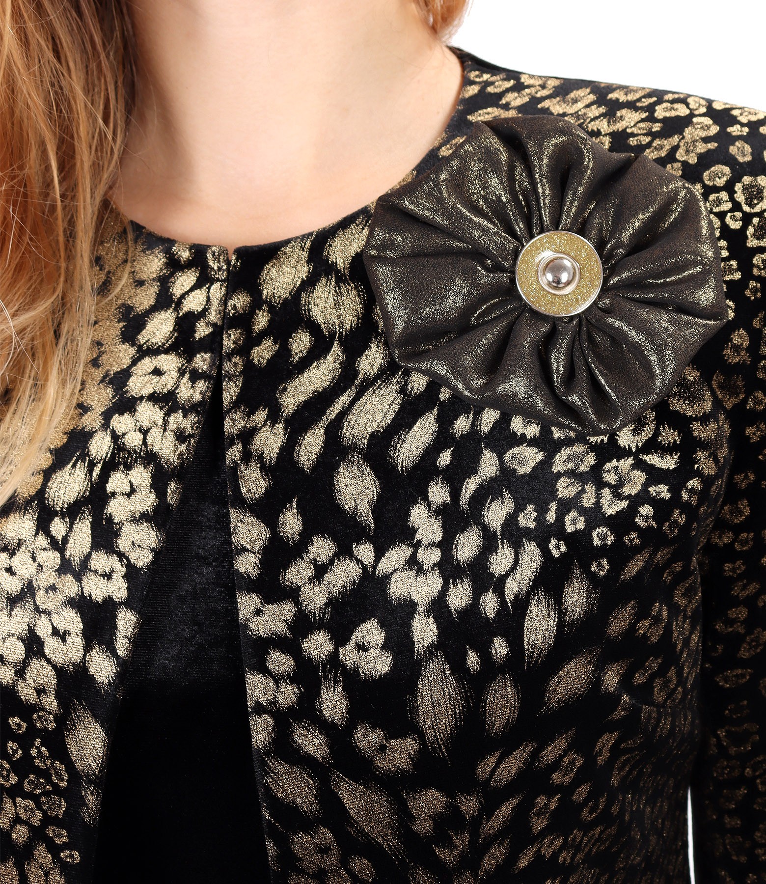Bolero din catifea elastica imprimata cu brosa detasabila