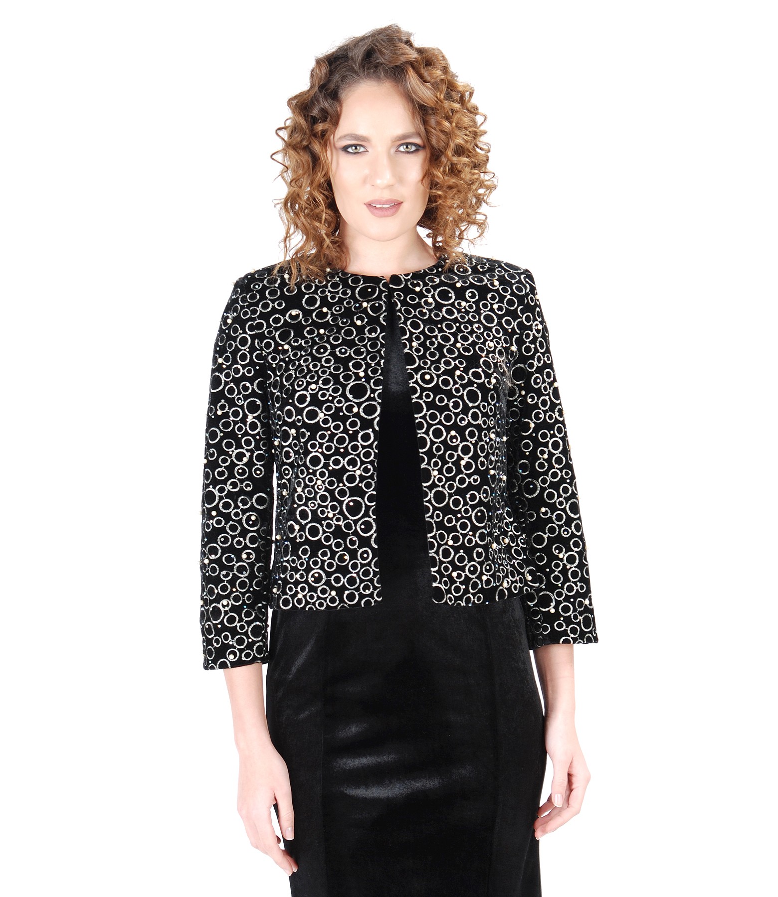Bolero din catifea neagra cu perle (negru), marimea