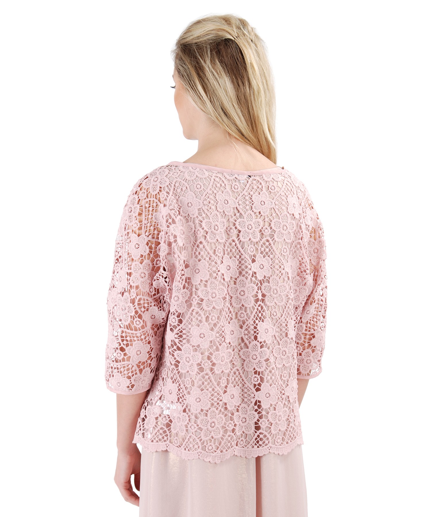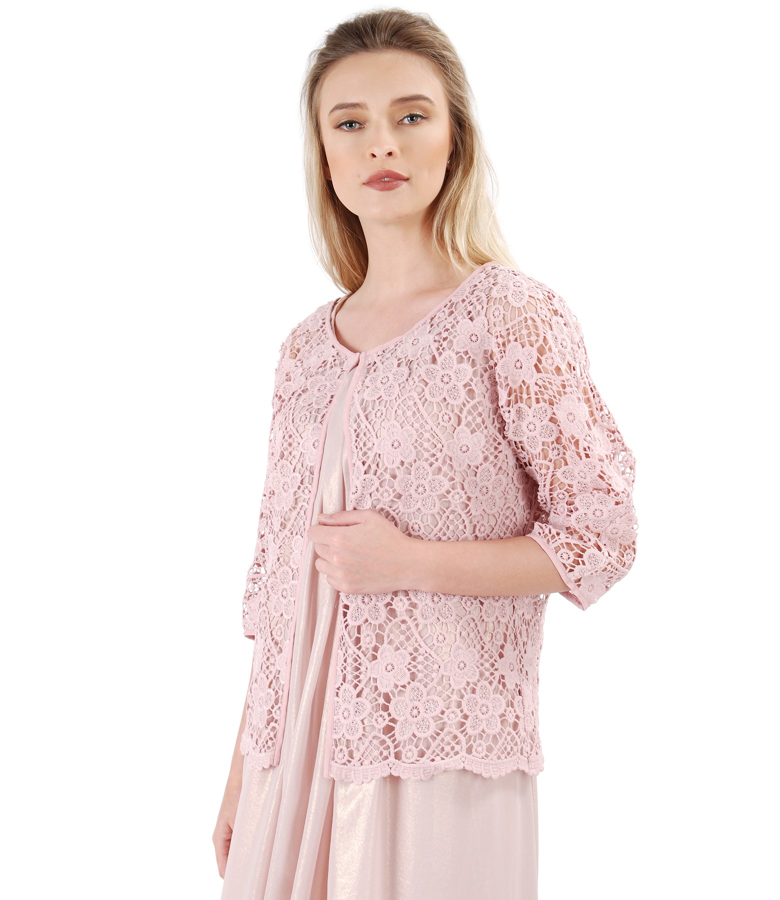 Bolero din dantela cu cu motive florale (Roz), marimea