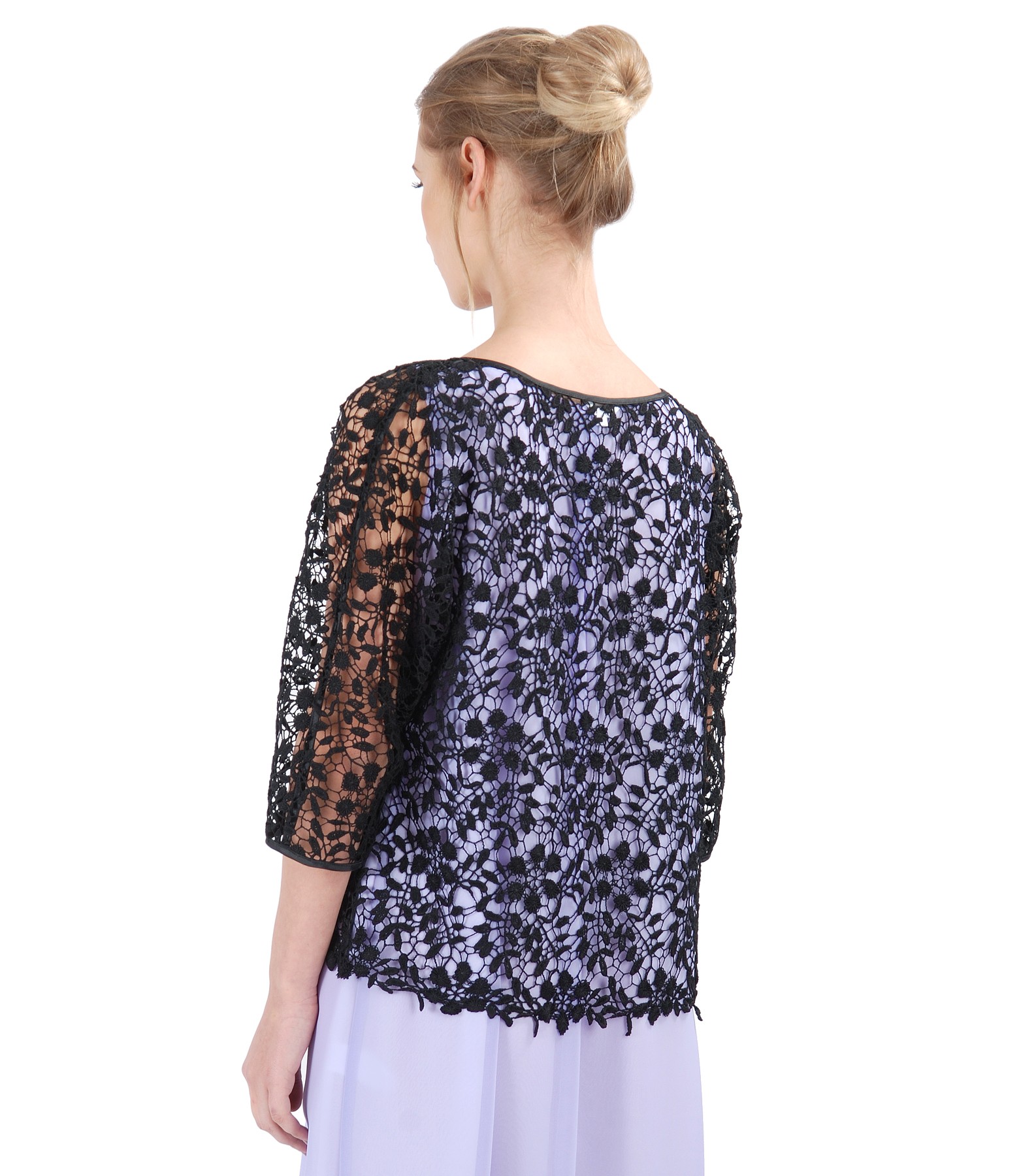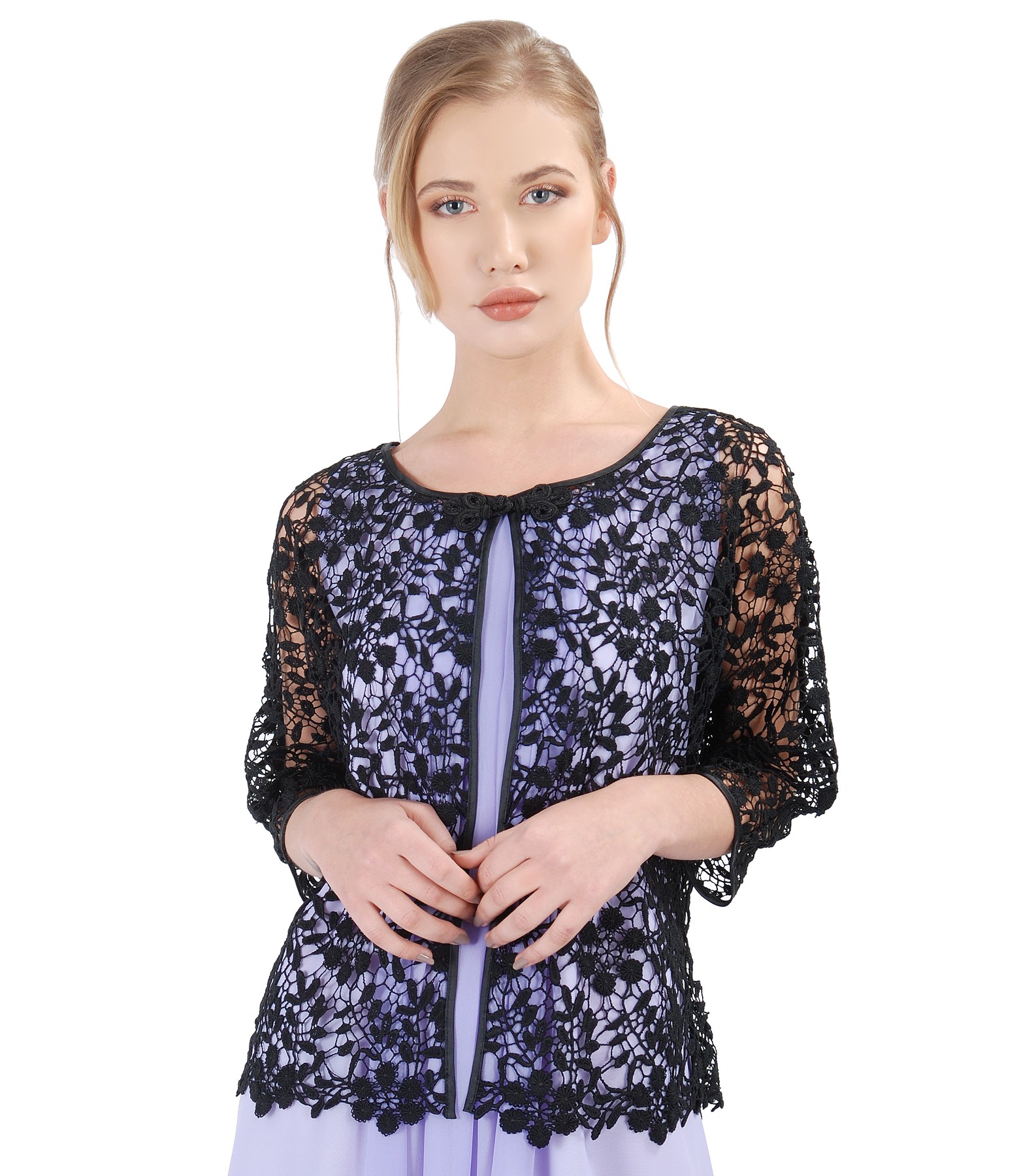 Bolero din dantela cu cu motive florale (Negru), marimea