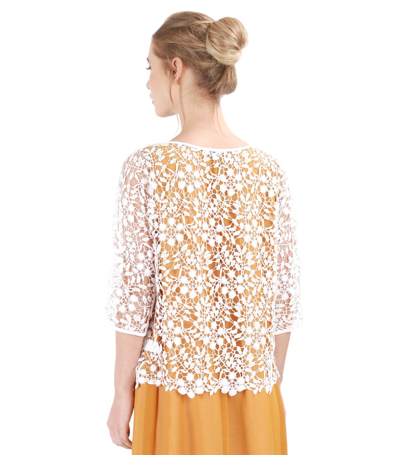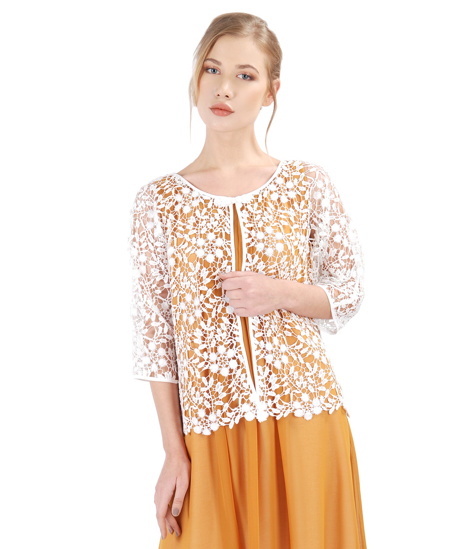 Bolero din dantela cu cu motive florale (Alb), marimea