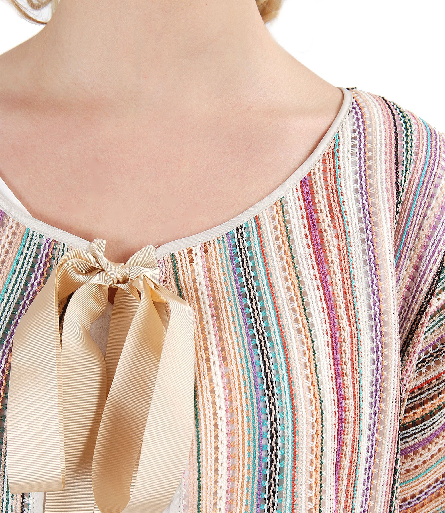 Bolero din dantela, cu maneci kimono 3/4. Se inchide pe fata cu o funda din rips.