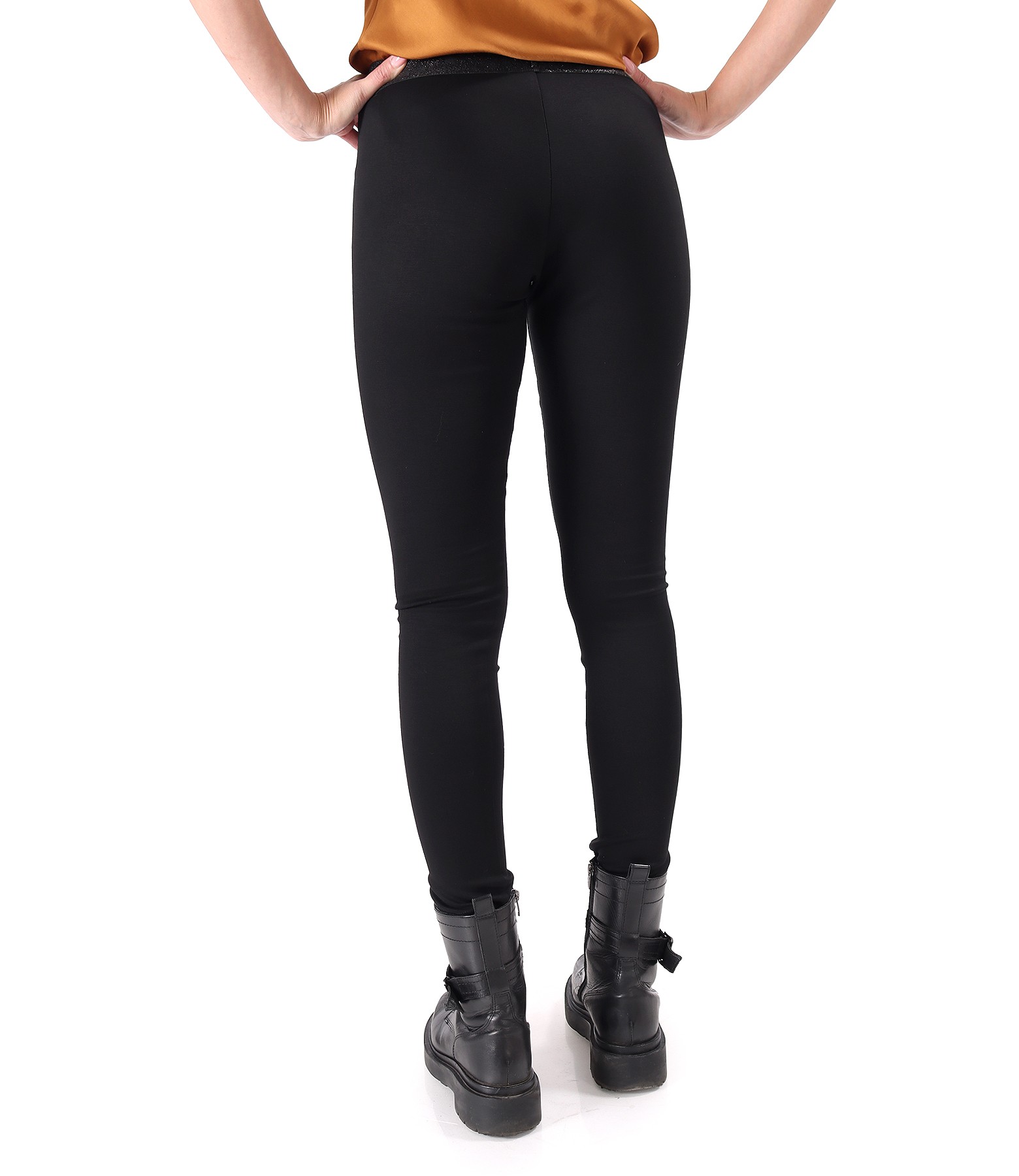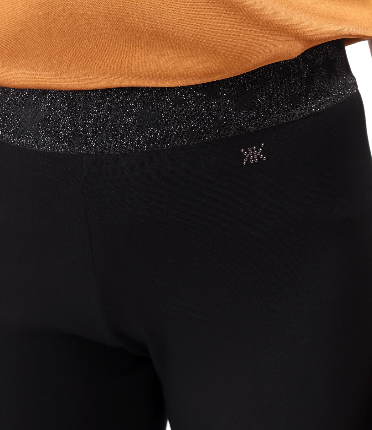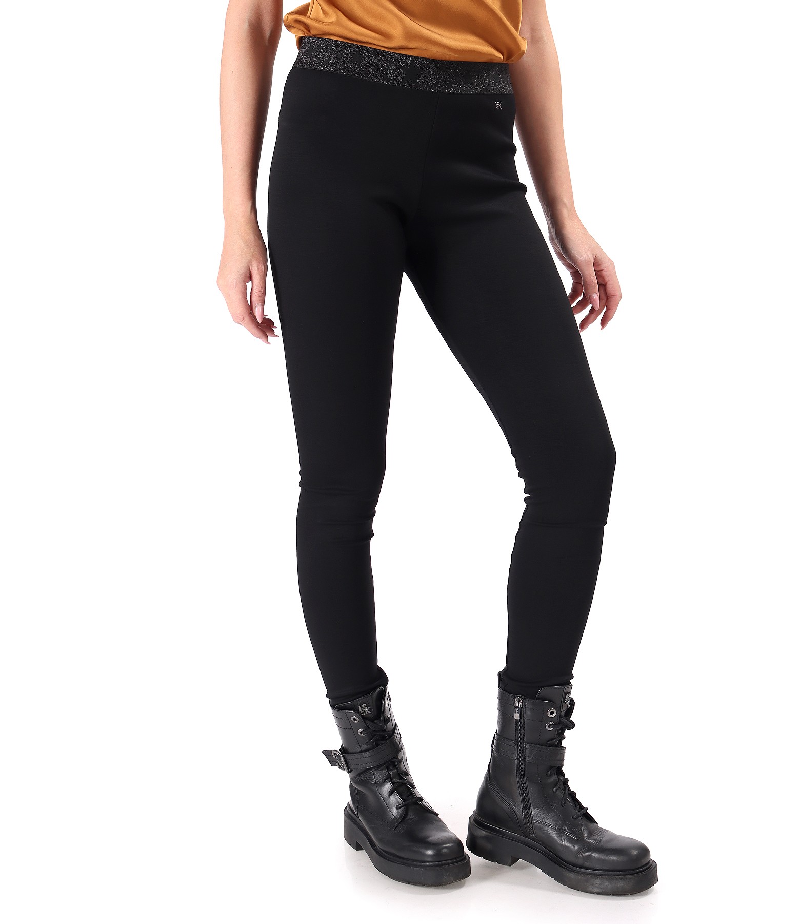 Colanti din scuba cu viscoza, cu talie inalta si cu banda elastica decorativa in talie.