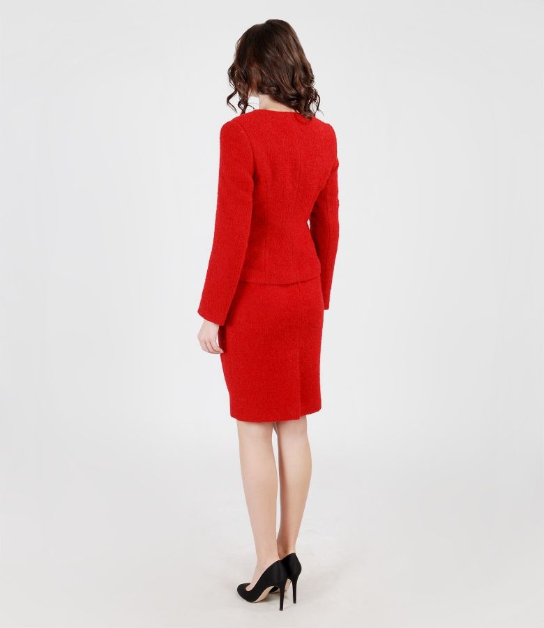 Costum dama din bucle rosu cu lana si alpaca