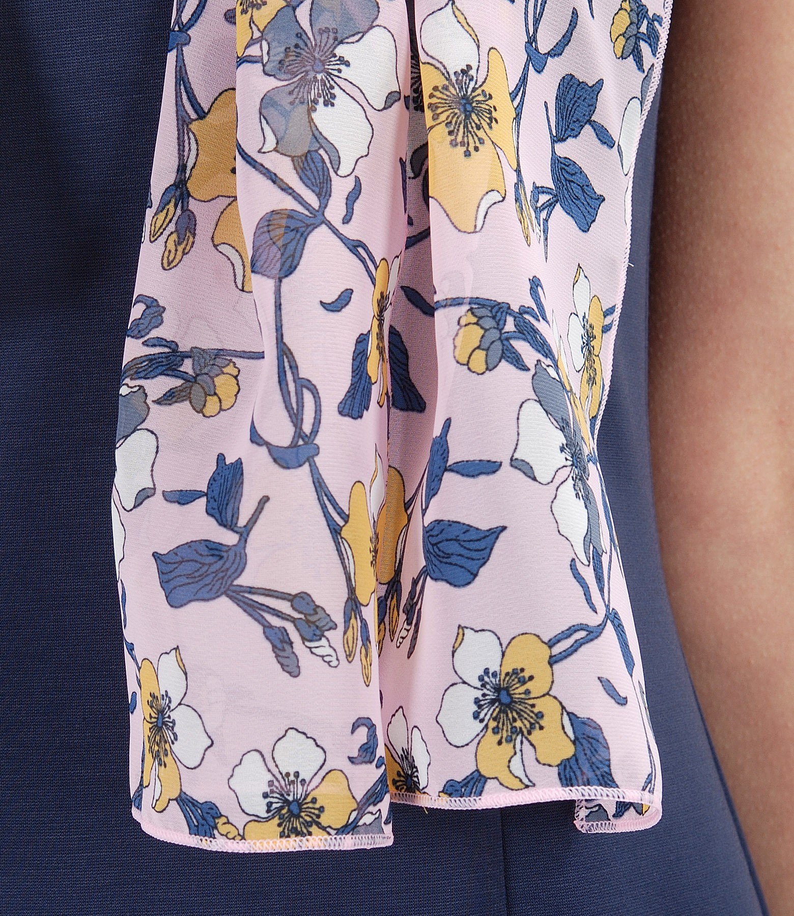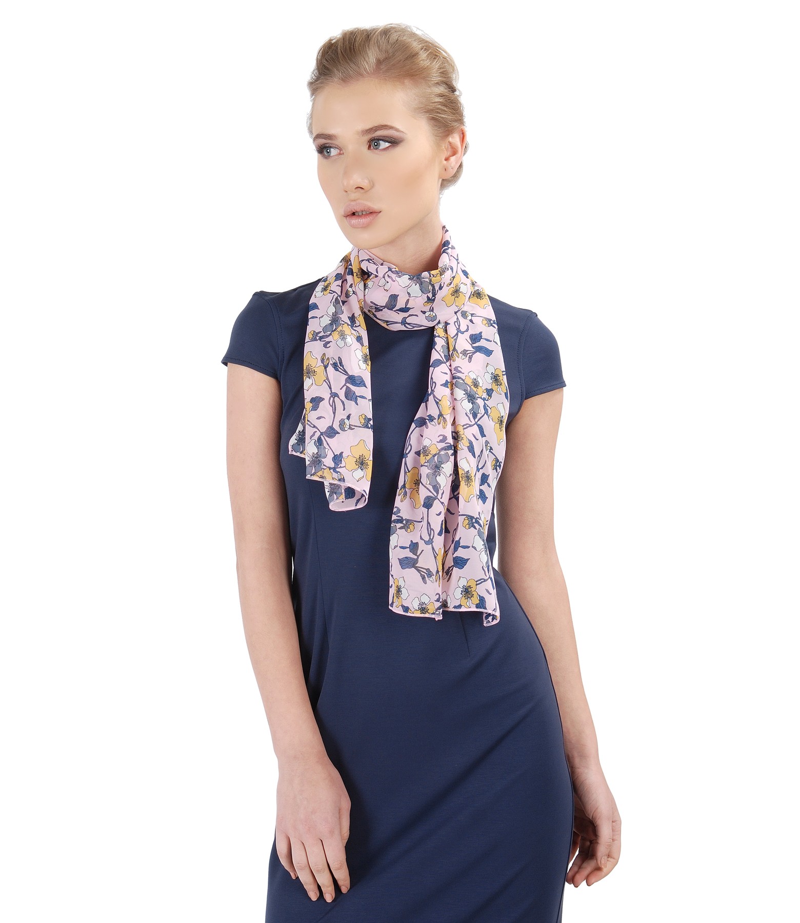 Esarfa din voal imprimat cu motive florale, de forma dreptunghiulara.