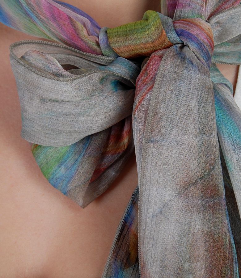 Esarfa din voal creponat imprimat, de forma dreptunghiulara.