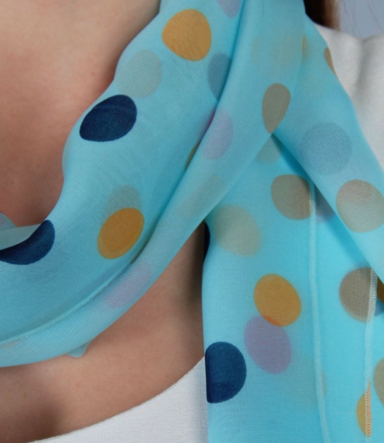 Esarfa din voal imprimat cu buline, de forma dreptunghiulara.